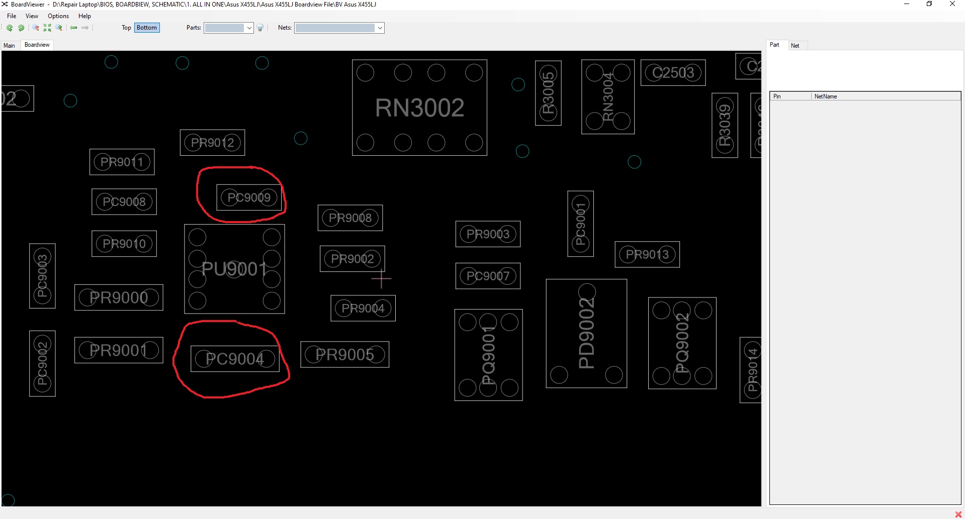 and check that 2 capacitor PC9009 and PC9004 pad is also short...already check where that capacitor goes and came from but cannot find the main problem...please help