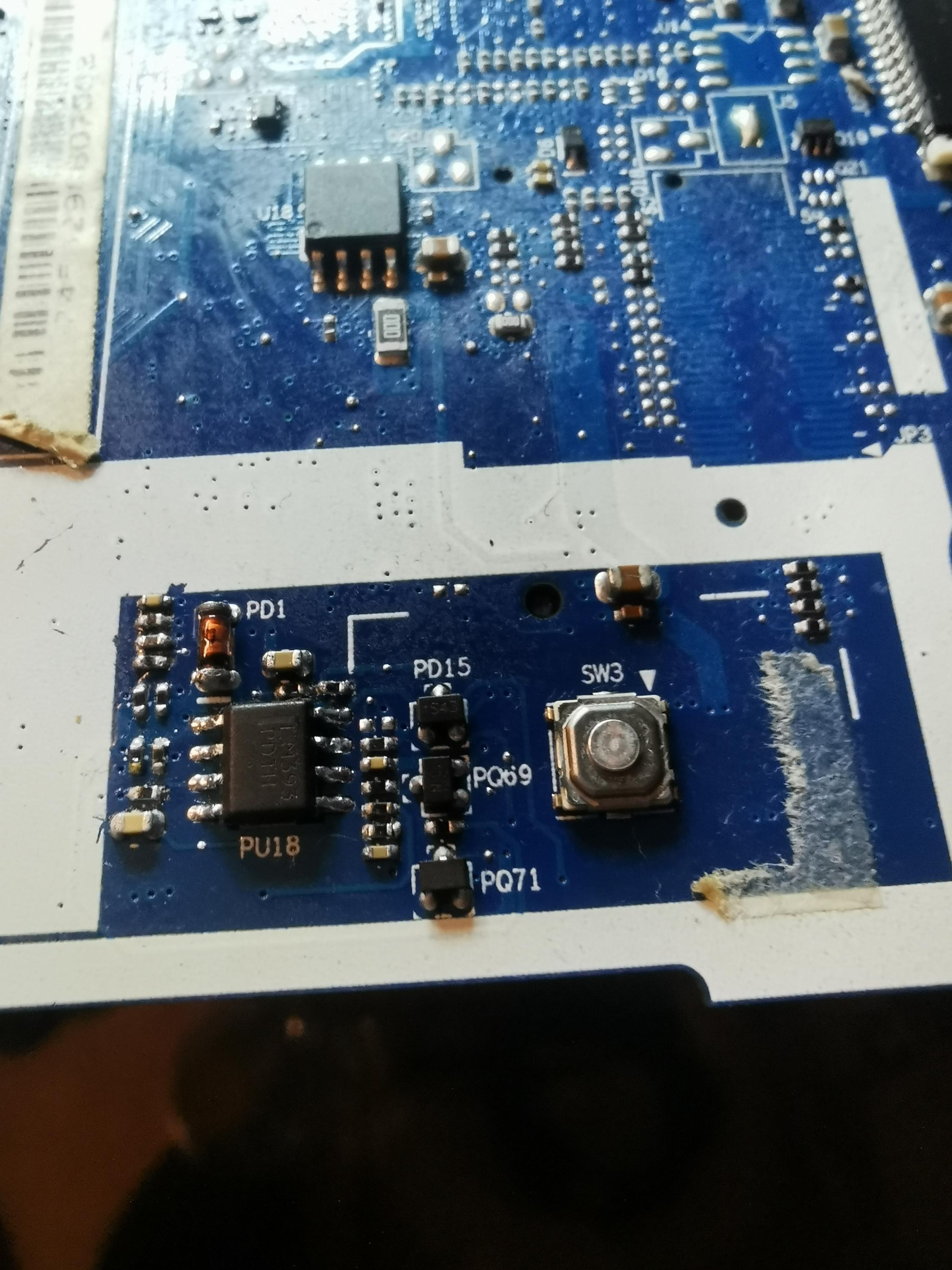 Hello i have a weird problem on an Acer 5742G. The laptop start and work perfectly on battery. But on ac adapter only i can't power it on. I have make a lot of test and check but i can found the problem. But at the beginning i have found corrosion on and around the PU18. I have clean the area but same problem. I have replace some cap that have not the good resistance and also replace the pu 18 and PD1 but same problem. If i check the PL27 and PL28 on battery i have fixed voltage 3 and 5v (always volatge) but on ac adapter the voltage run from 2 to 3v and 3 to 5v constantly. Because i have an other board like this i have replace the 3v/5v chip PU16 because when i plug the adapter it's seems there is an shortcut, same with PQ46 and also it have a ugly face. I have try to replace the 2 first mosfet PQ51 and PQ52 because i have 19v on first, 18.85v betwen and on the gate of PQ51 and after pq52 i have voltage that oscilate between 7 and 9v. For now i have no idee what i can check. Could you please help me ?