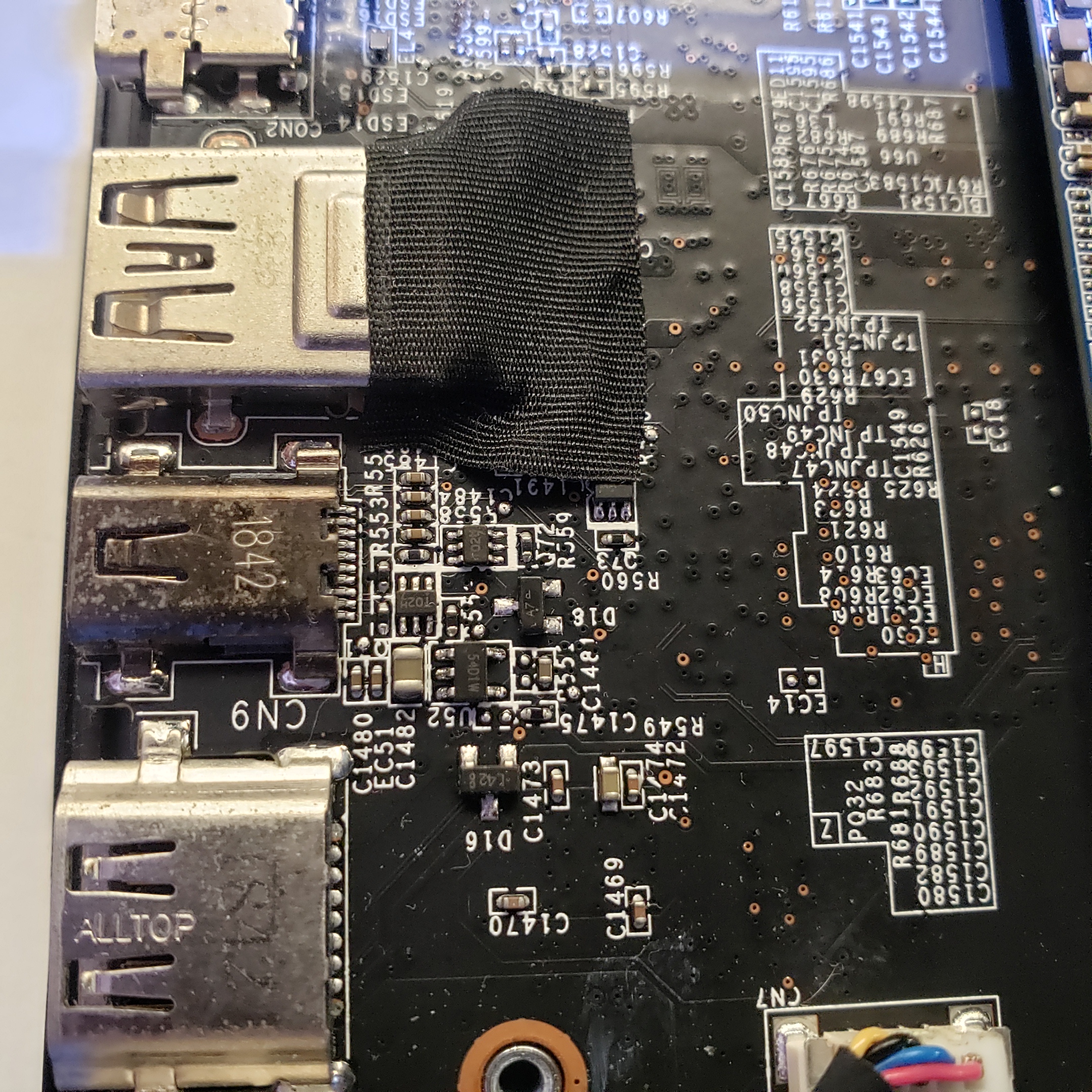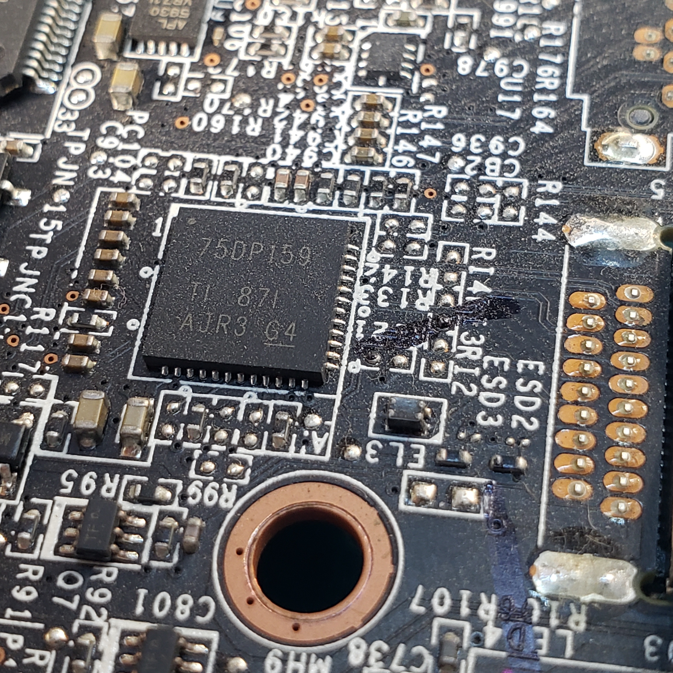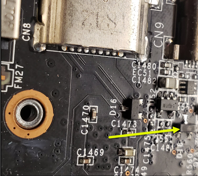 Looks like I fried something when my EDP cable got squeezed on the hinge. I replaced the cable but still no display. Laptop works fine with external monitor connected through HDMI and Display Port-USB C port. I took it apart and I see a burnt component. Can anyone help me identify what this component is? I tried to use schematics for another G15 but it does not match on the amount of pins and size. I attached pictures. The component has a label on it - (21A29)