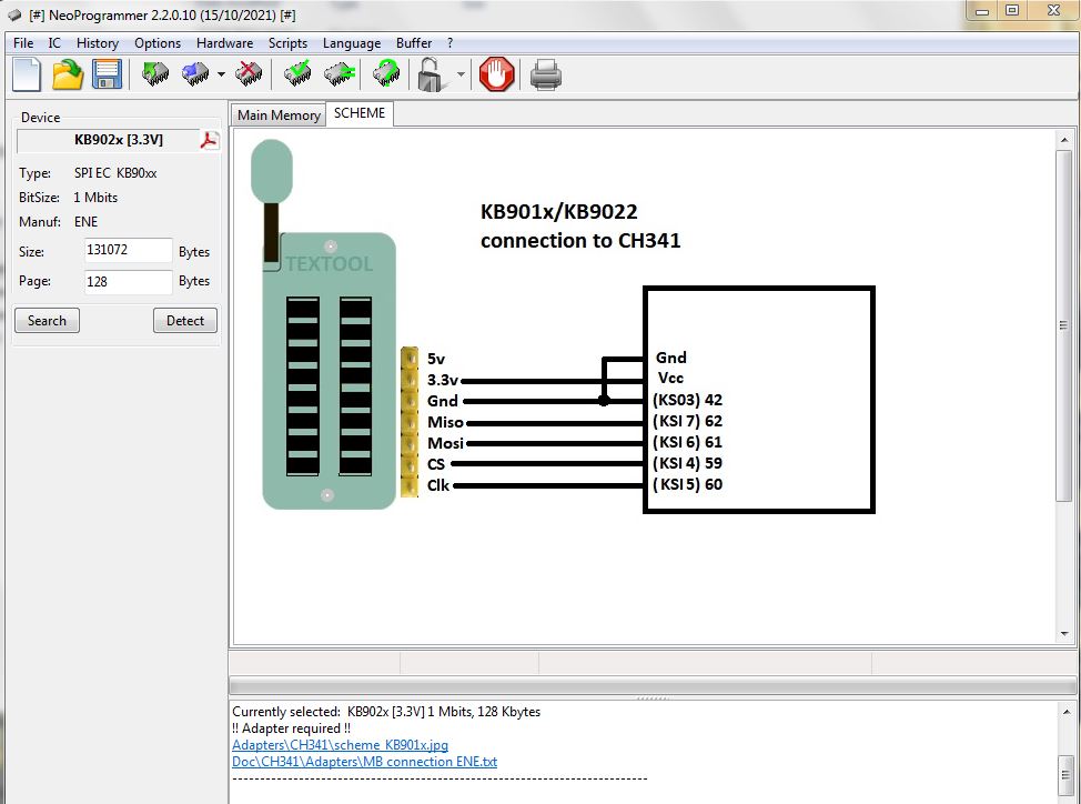 NeoProgrammer software for the CH341A .Its better to invest in a proper IO programmer though, as mcplslg123 said "KBC programmer is a must if you earn money from this business as almost all the mb has programmable kbc chips these days."