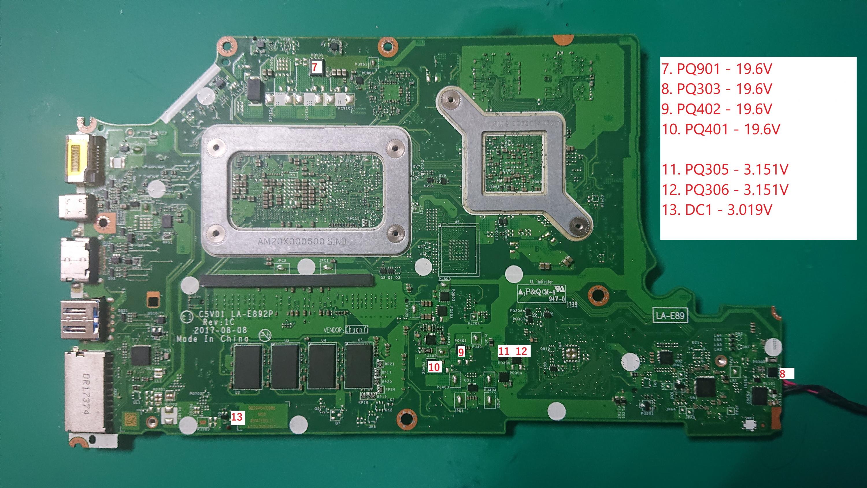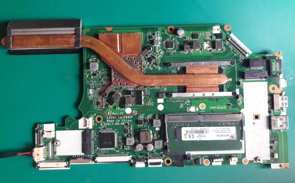 ACER ASPIRE A515-52G CAN ON BUT NO DISPLAY, NO POWER AT VCC_GT