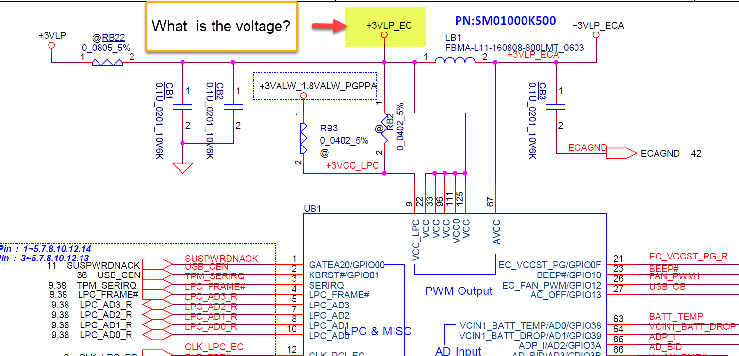 ub1 has power but +3VLP_EC is showing 0.0054v