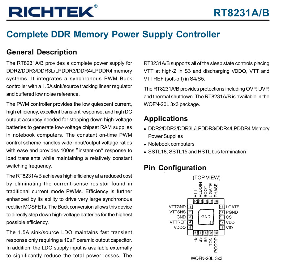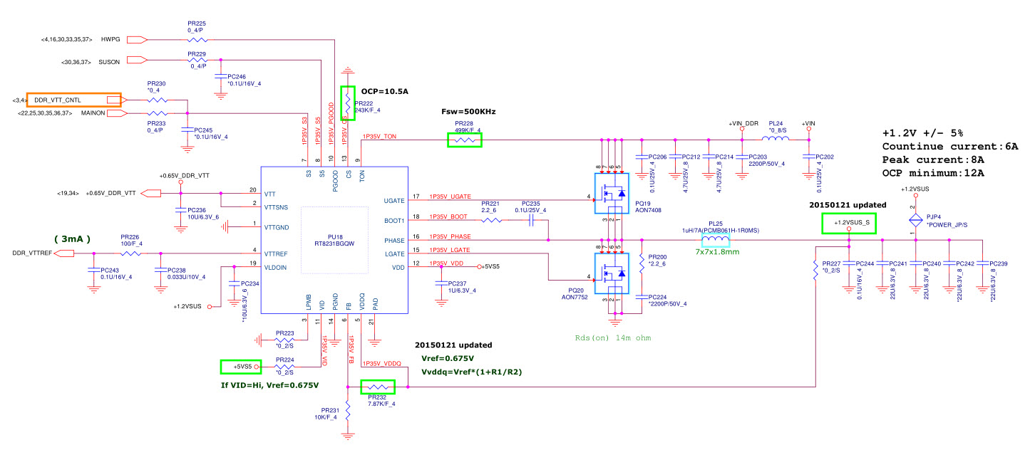 Found oxidation around RT8231AGQW IC, desoldered, cleaned, all pads are fine (on board and IC). found resistor on Pin 9 (TON) open, replaced it with 500k, now notebook stays on but delivers only 0.7V on RAM.