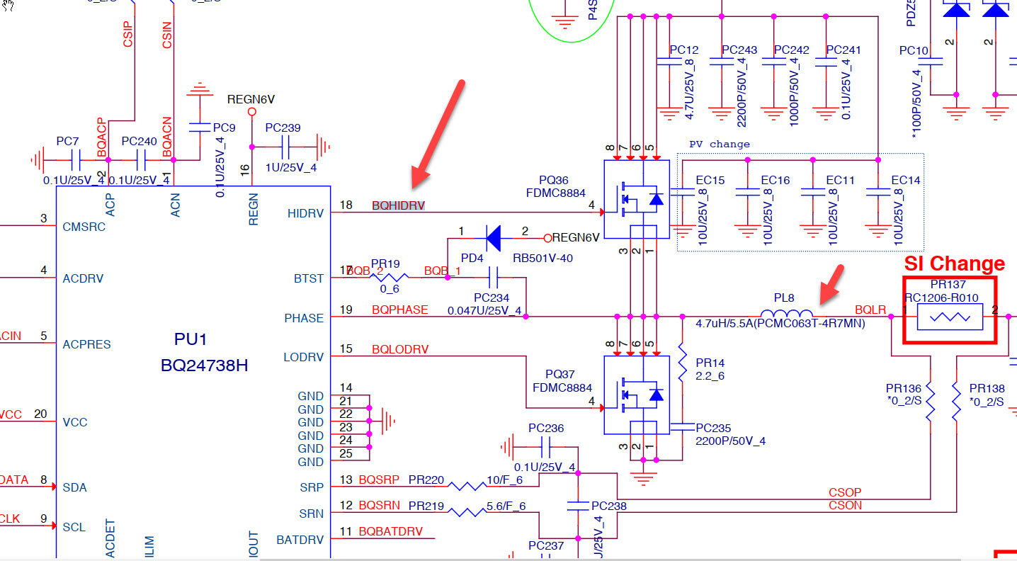 This pin is connected to the GATE of the high side mosfet @ PQ36.