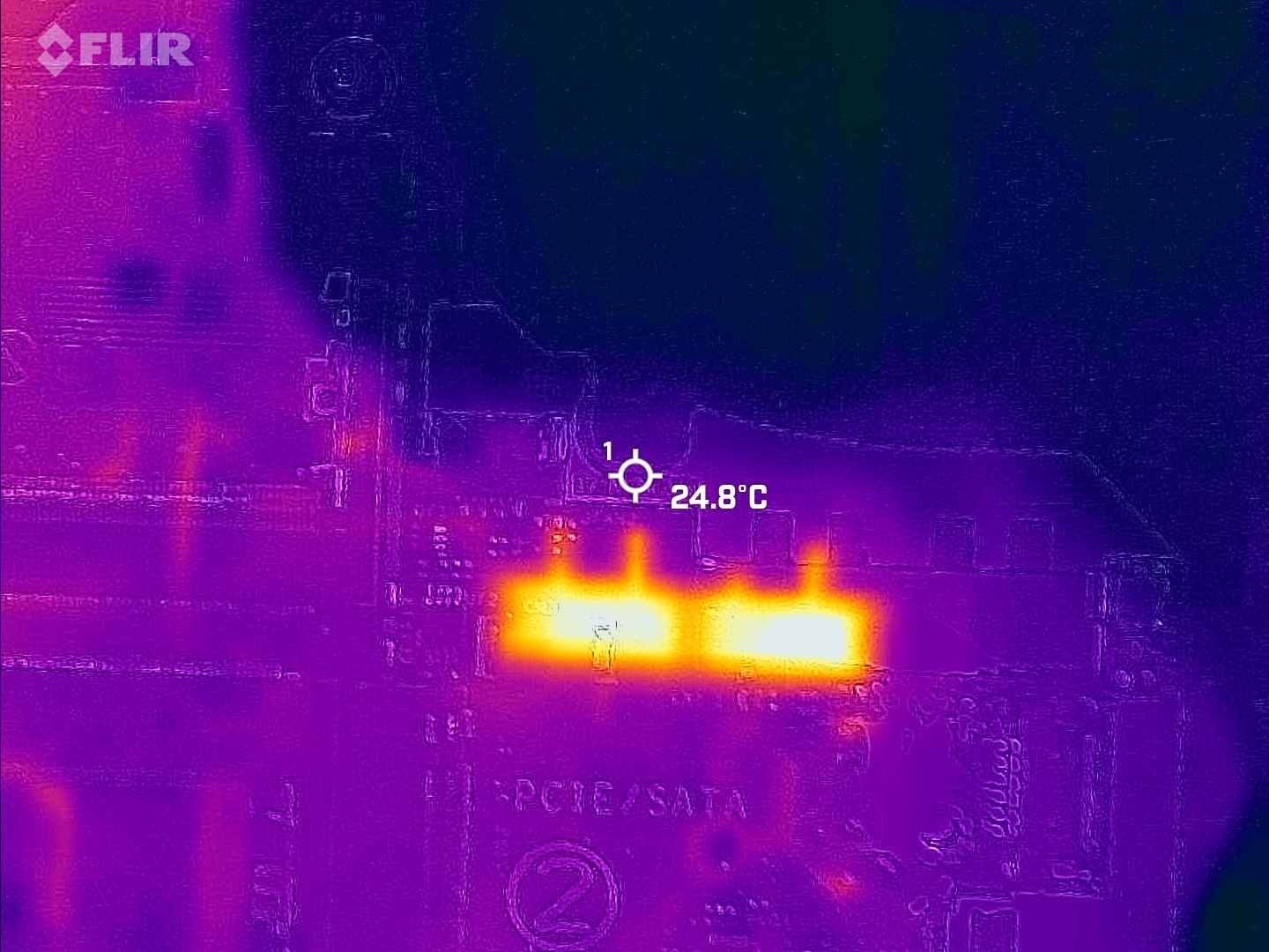 Nothing felt warm to me when feeling around the board except the CPU, which was barely noticeable.