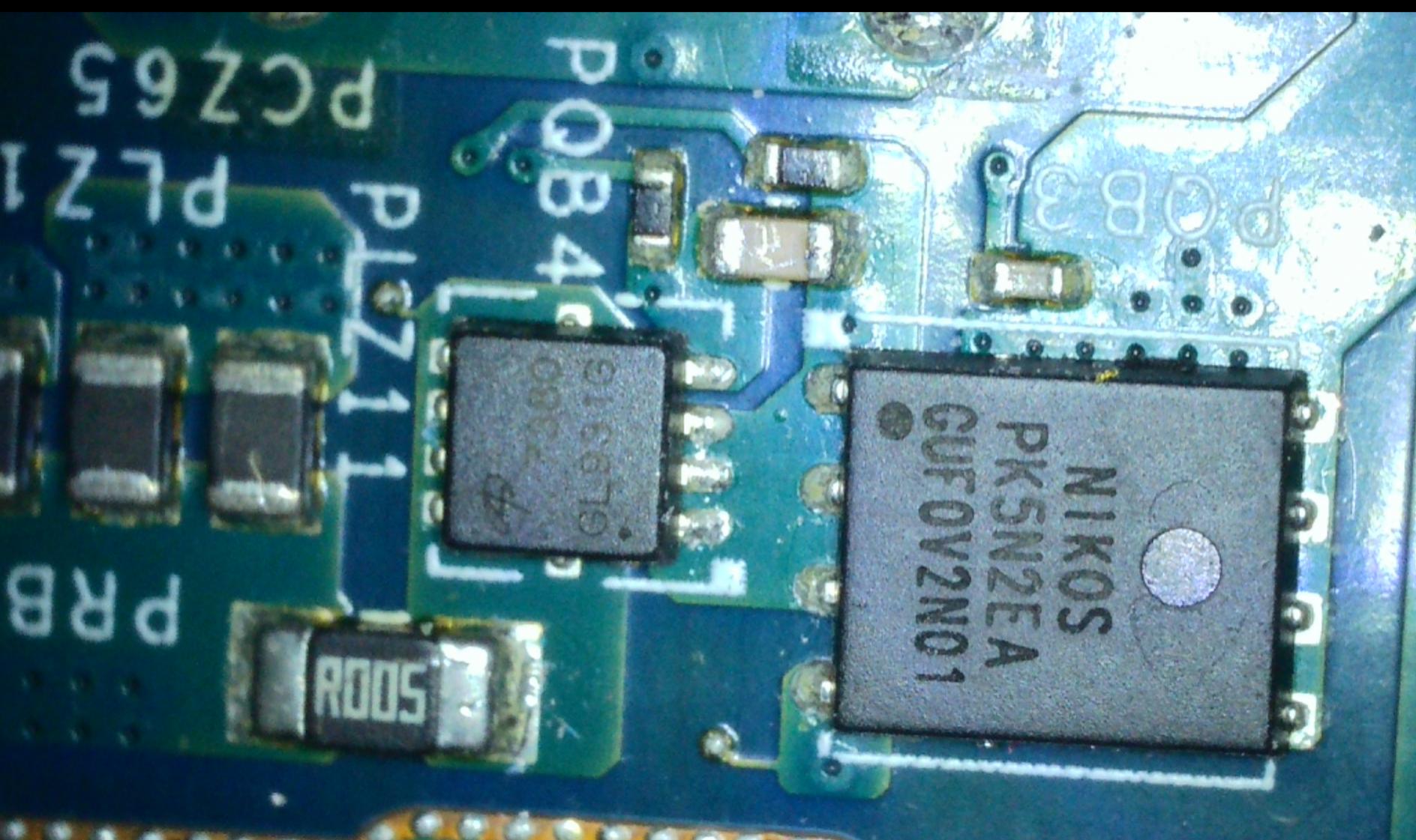 Being N-channel, the gate pin #4 of the DCin mosfets has to be higher than the voltage they are passing between the source / drain pins. For this logic board, the gate pin should be ~25volts to enable the mosfet.