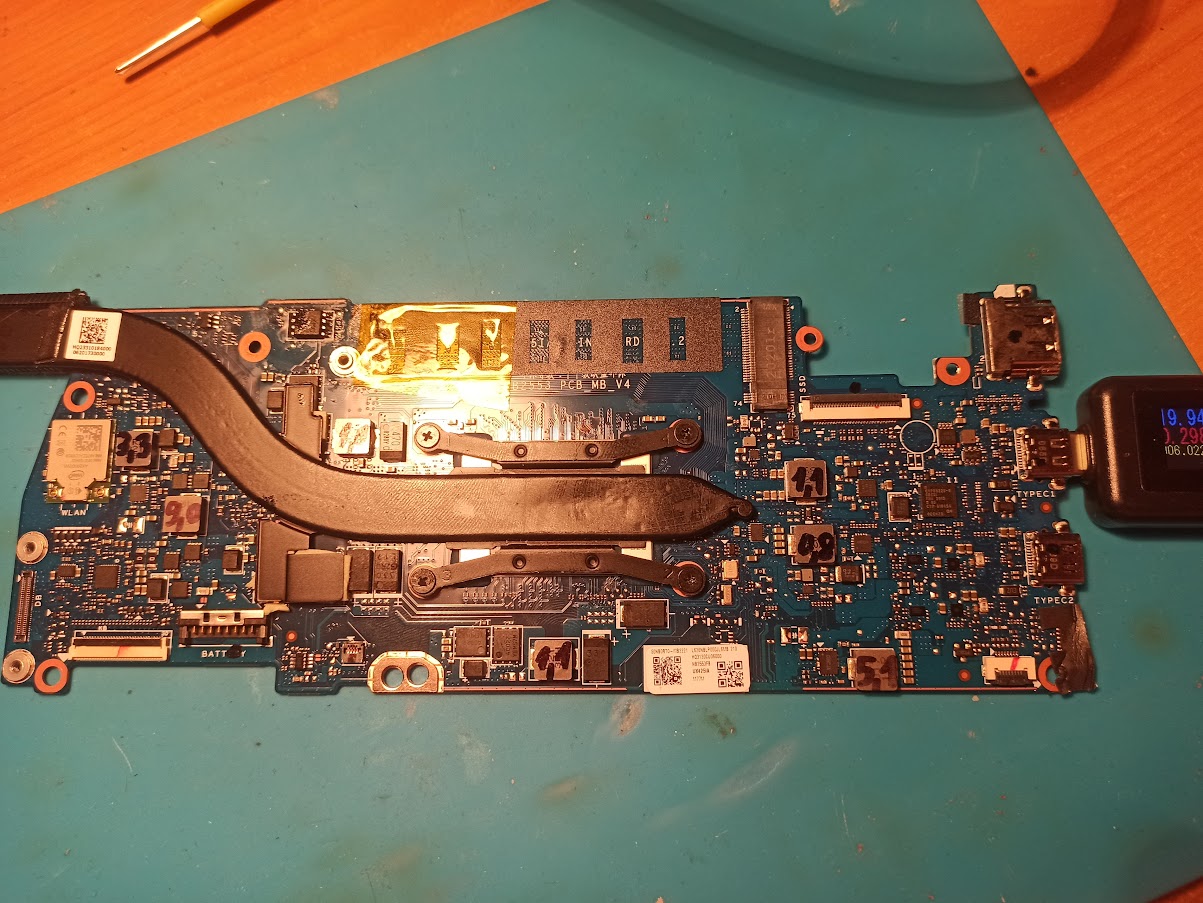 Asus UM425 with board UX425IA with AMD Ryzen soc that selfstart to 6.5W with no picture. All main voltages are present. powerbutton just reset system and it selfstart again. SOC is heating normally.