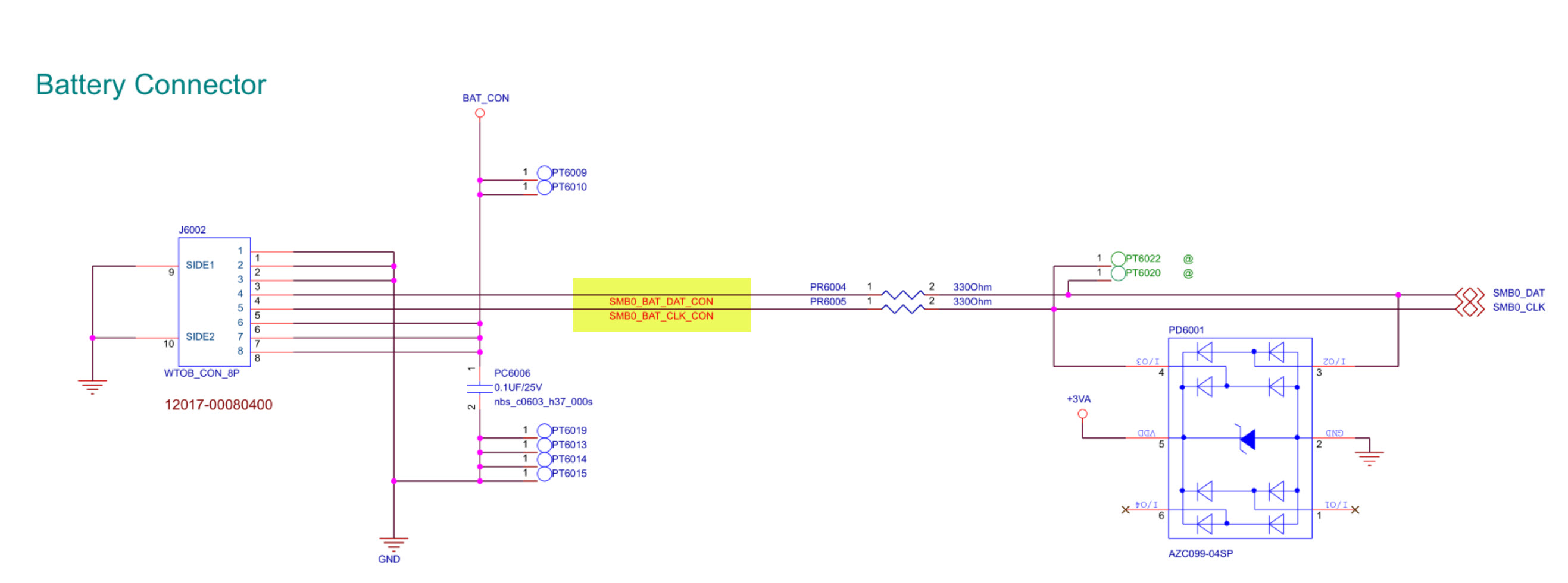 The battery pack will have SMBUS pins (aka I2C) with SCL & SDA interconnect.