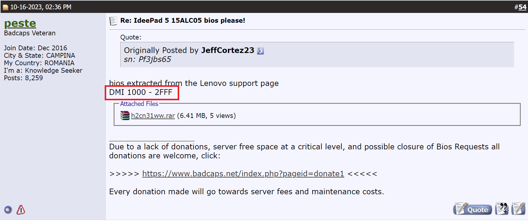 Due to a lack of donations, server free space at a critical level, and possible closure of Bios Requests all donations are welcome, click: