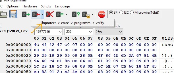 I got the programmer and read the bios of my 15-alc05 now. My Bios chip is called "74m12jwsiq" but asprogrammer automatically suggested "W25Q128FW". What do I have to do now? How do I add that DMI info and what is this? is it necessary? Here is my bios backup (i have packed two files into the folder on one I just clicked save and on the other i added .bin when i saved it)