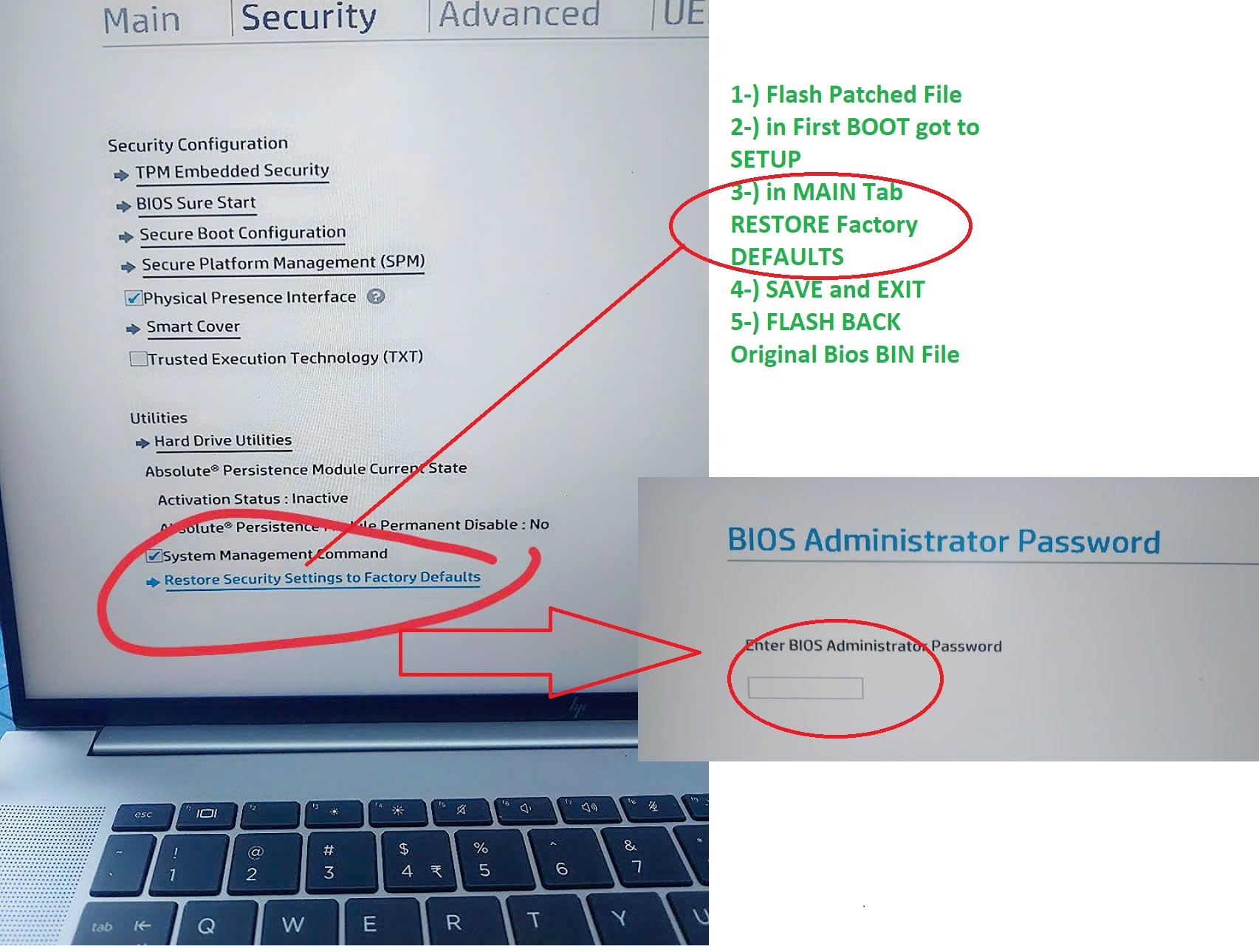 if reset Main tab When FLASH BACK Original Bios BIN File password is stil
