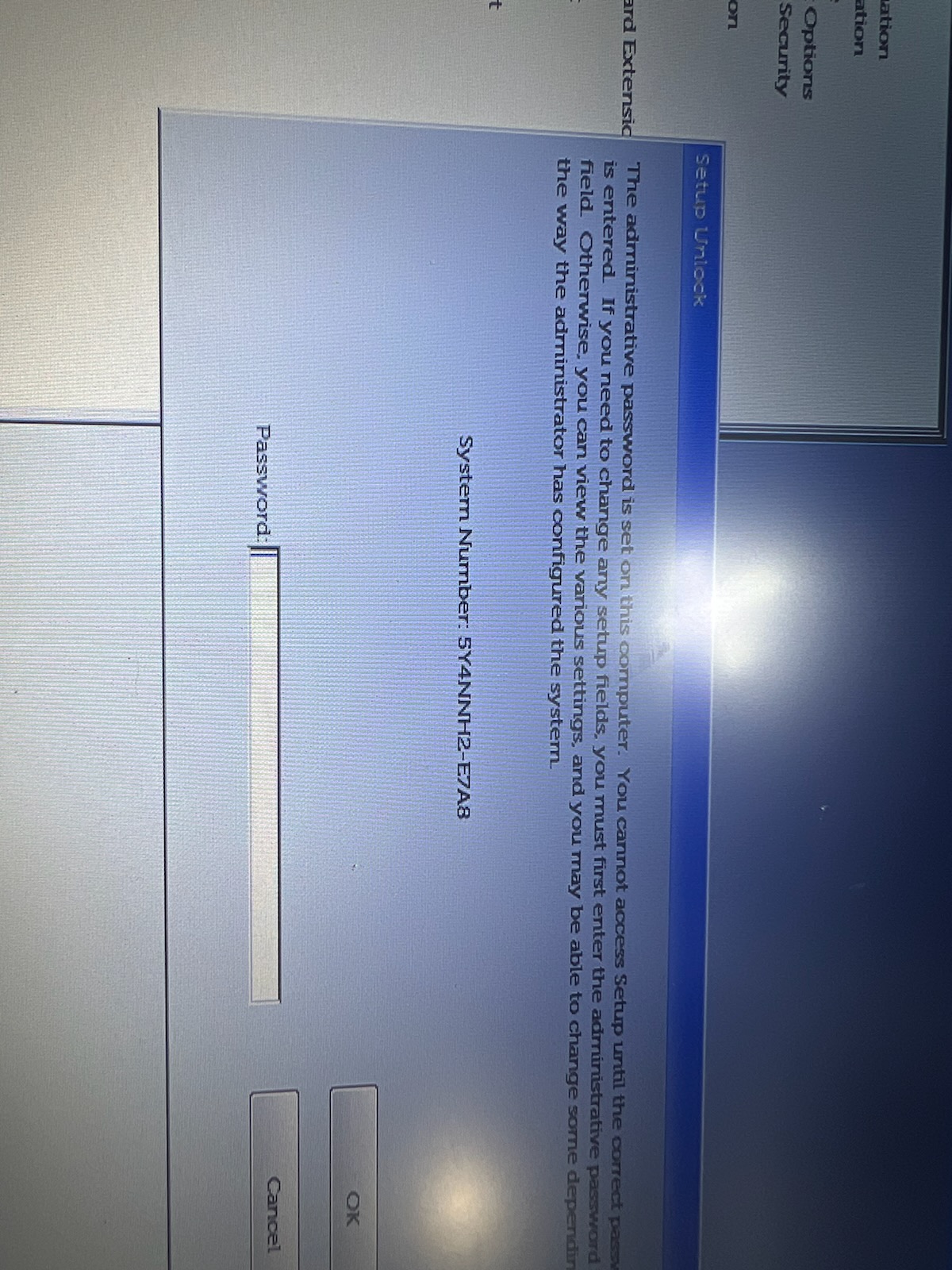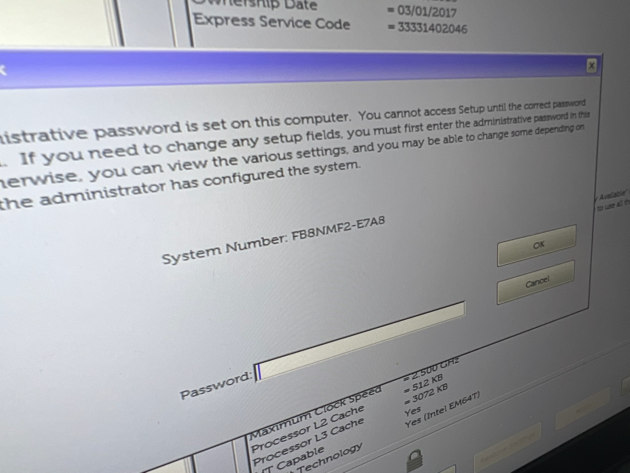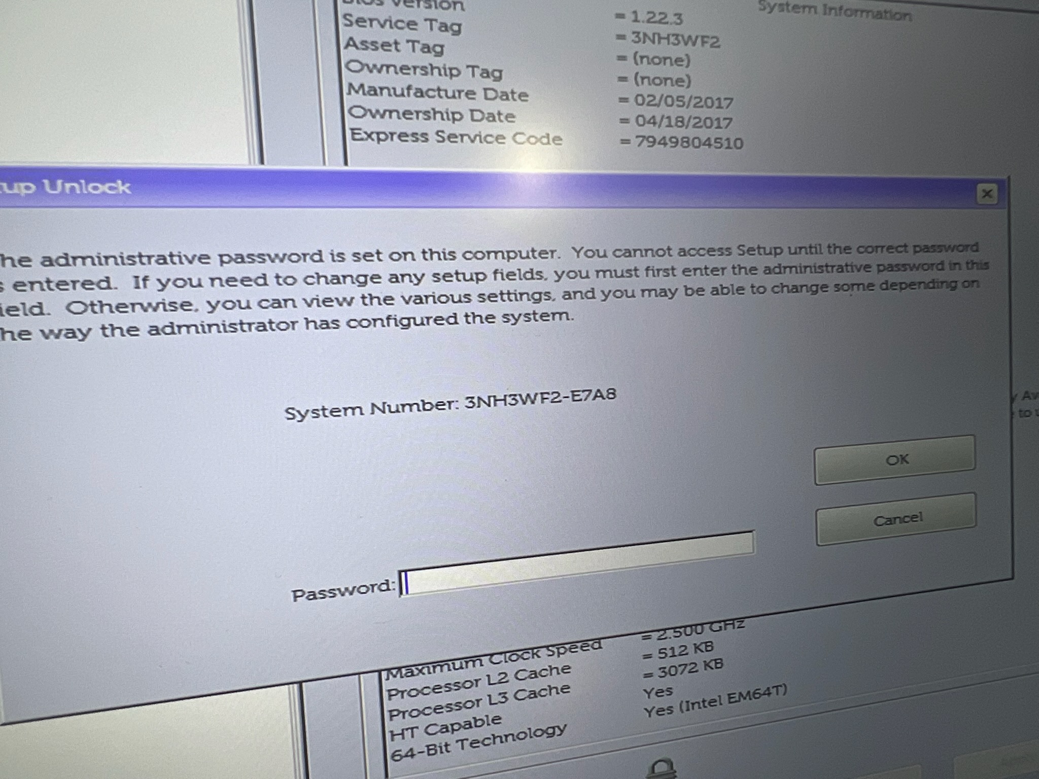 Dell latitude 3190 Suffix E7A8 Bios Password Request