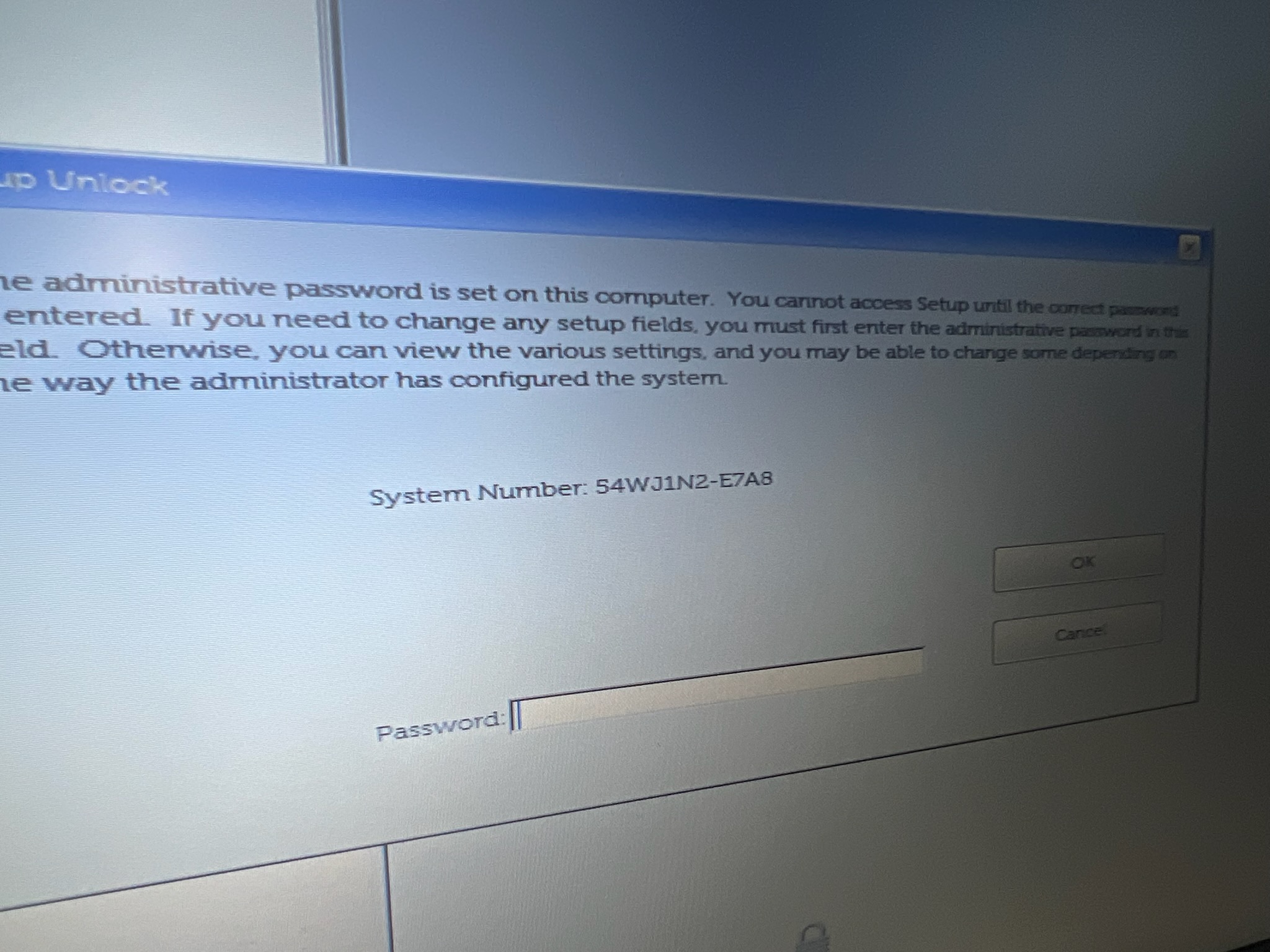 Re: Dell latitude 3190 Suffix E7A8 Bios Password Request