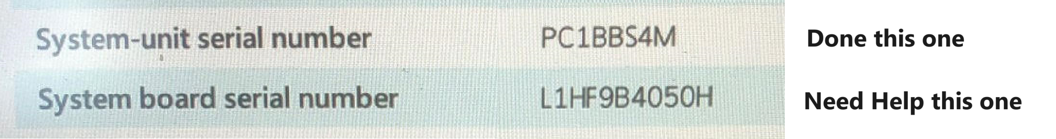 Hello mate I don't think you been understanding me, its the system board serial number I need help with.