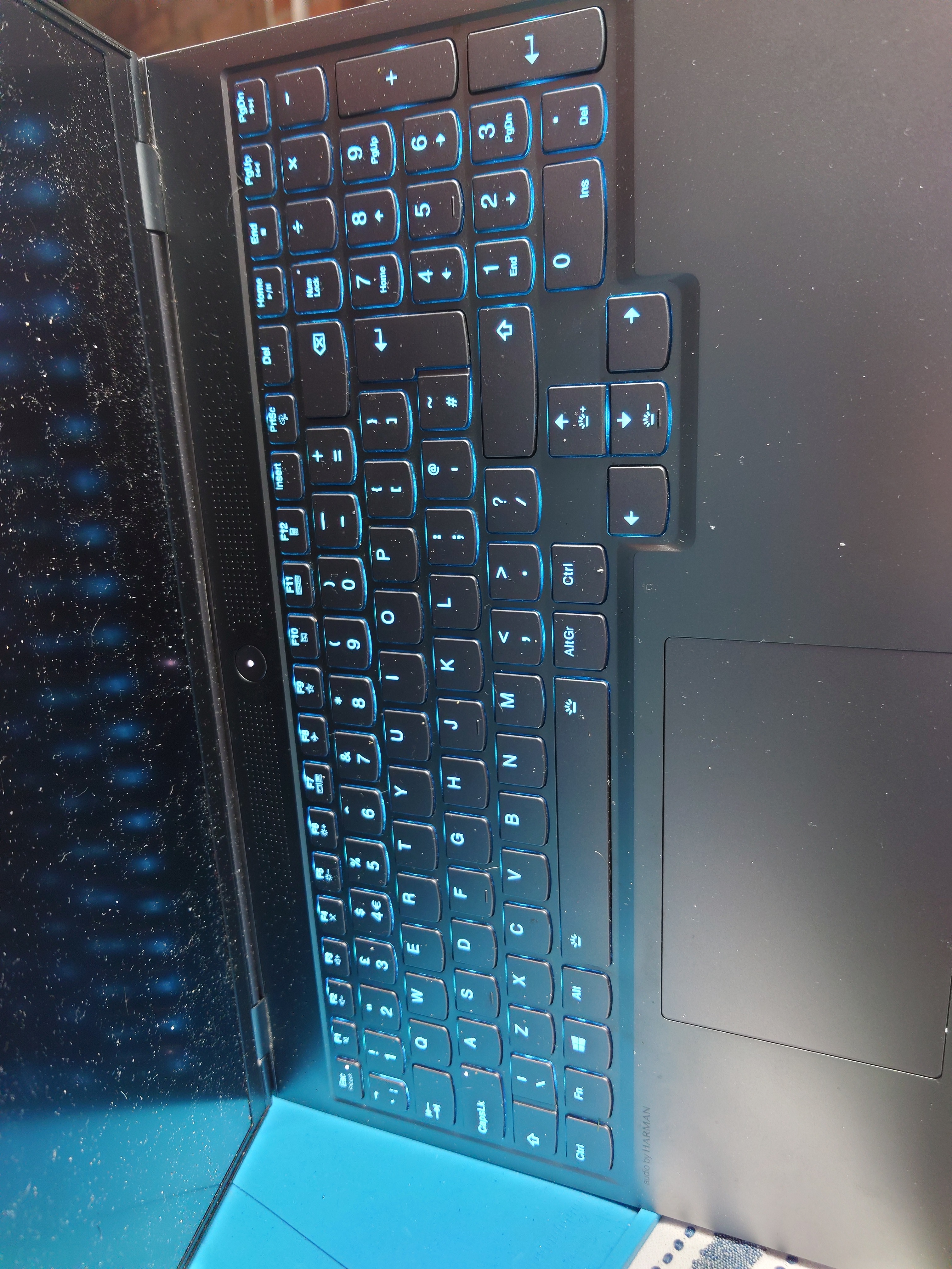 • Board powers on (fans spin, keyboard lights up and can be adjusted, caps lock led lights), but no display or backlight