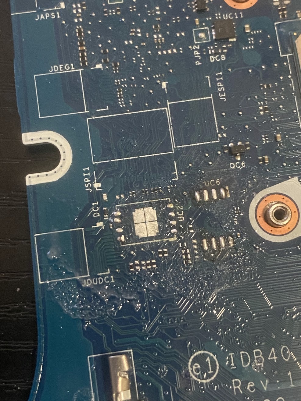 Clean motherboard with IPA in first place to see te REAL damage (its not tragic based on this photo) capacitors looks are in place ;P and chips pins are alive sooo....