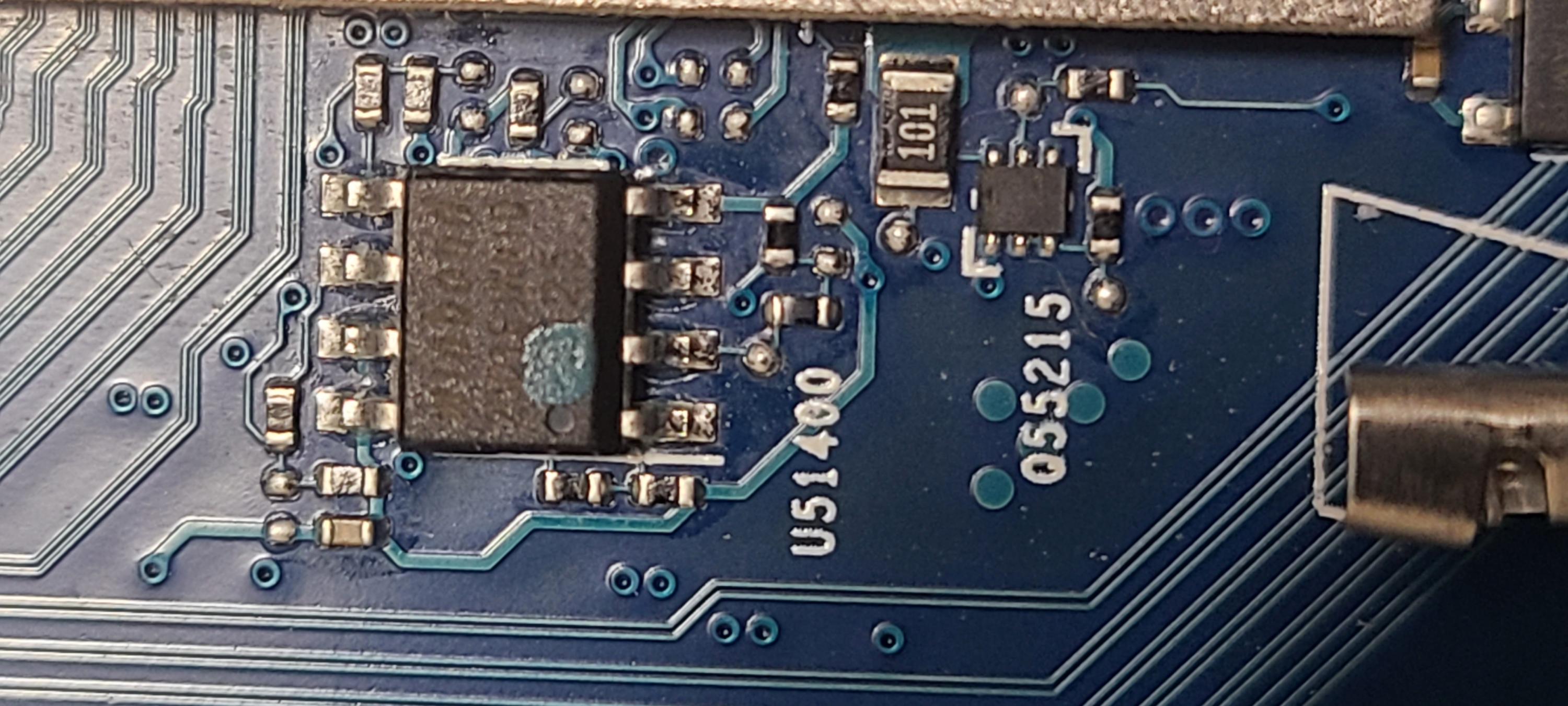 I have attached pics of the mobo and 2 IC's on it that look like BIOS chips, just not sure which one needs to be flashed.