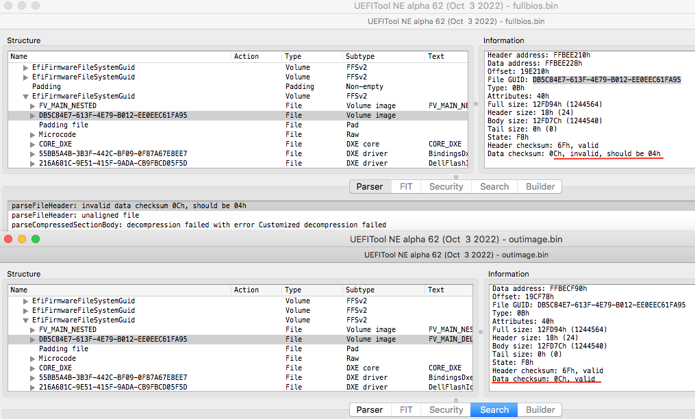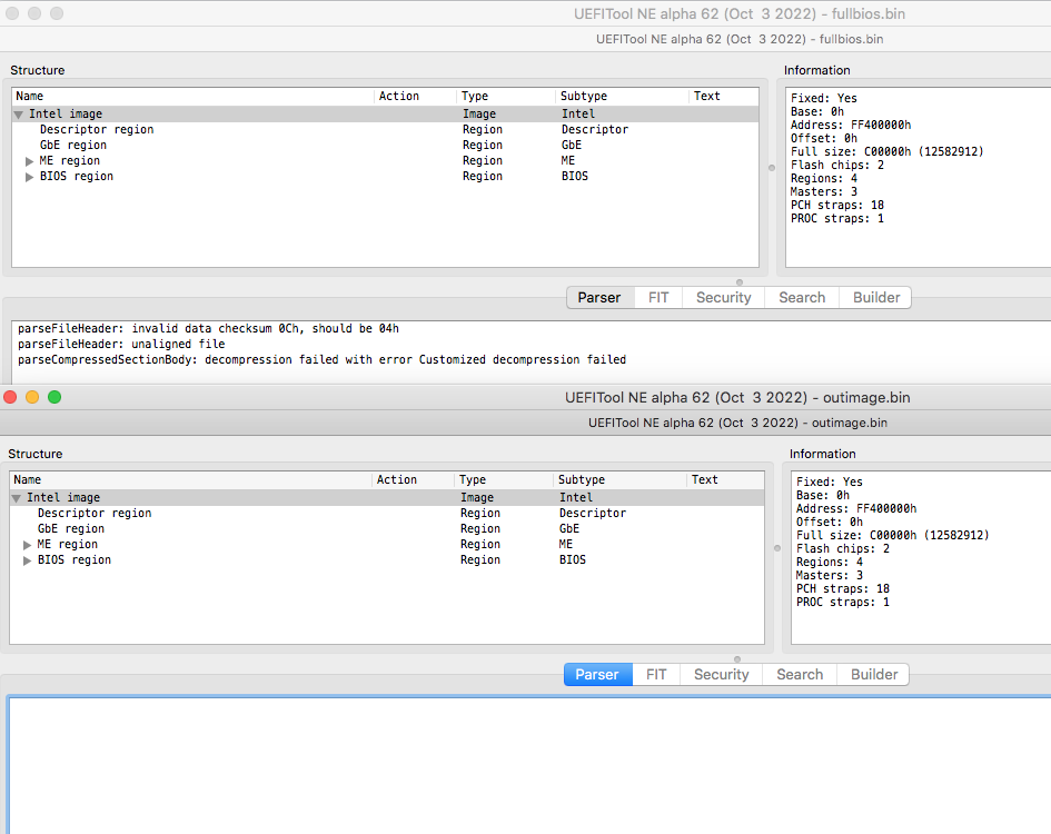 I'm having a hard time extracting this Dell BIOS. I have a Dell Latitude E6530 that has BIOS corruption and I need to reflash with CH341A programmer. I have already taken dumps of both the 4MB and 8MB chips on the motherboard.