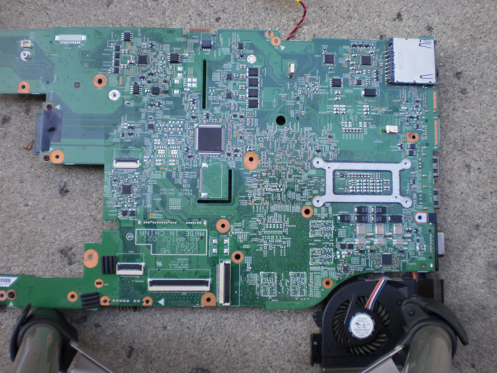 First of all, what I need to have plugged into the mainboard? CPU, memory, BIOS battery and power switch? I don't have connected the little daughter board with the card adapter and a USB port, DVD drive, any of the touchpad, keyboard, speakers, LEDs, screen, HDD.