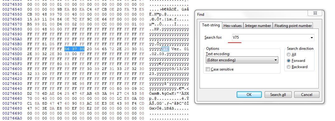 Search for text V75 .It`s not encrypted. What did you search for was it BIDV75