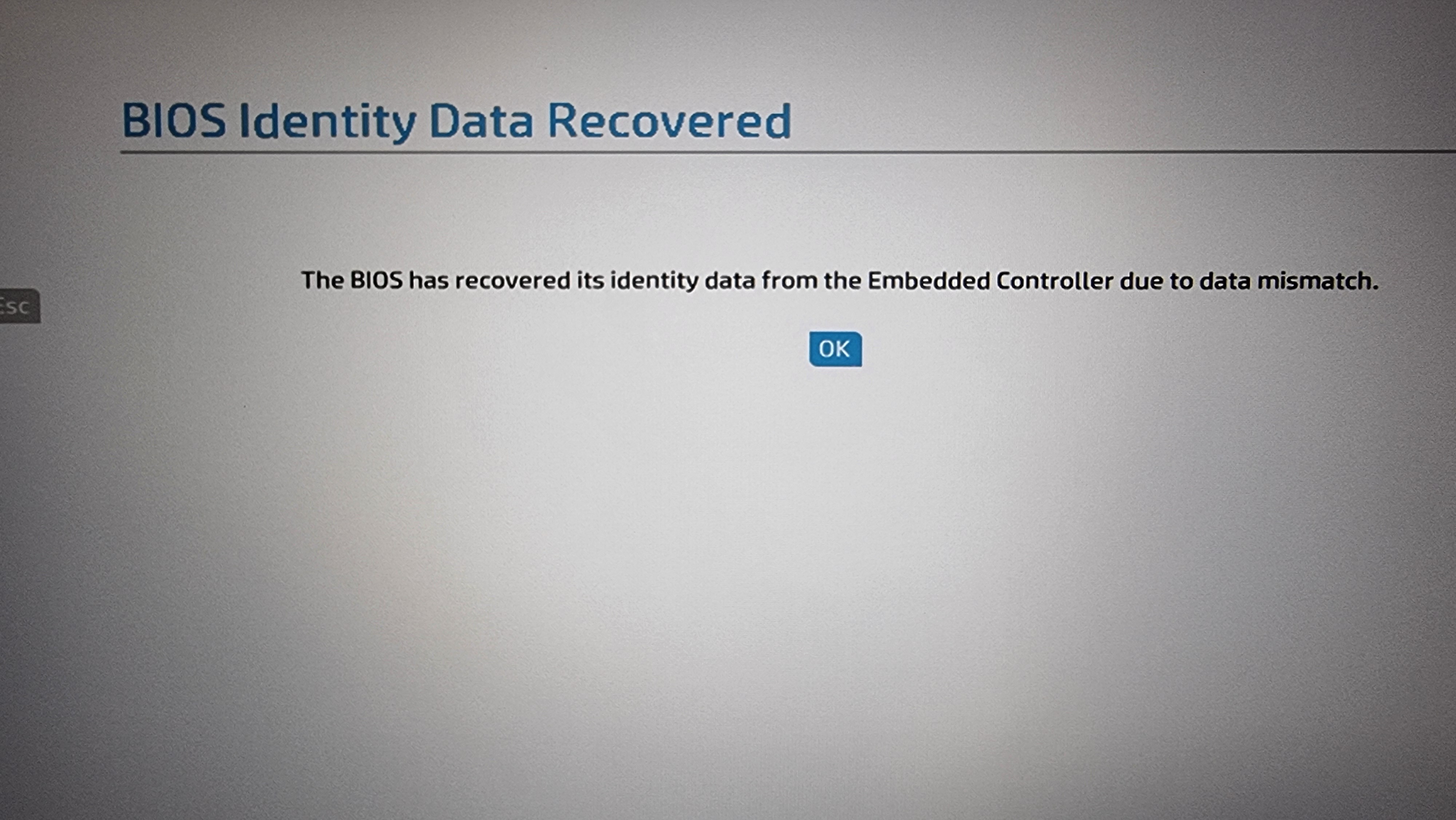 use my post # 120Hi, after applying post 120 the password prompts for F9, F11 and F12 were disabled, but unfortunately not F10. After flashing both chips (and re-reading and verifying against supplied bins) the HP Elitebook 840 G10 went through its normal few reboots, but before I got the opportunity to get to a point where I could press F10 to set factory defaults, I was presented with "BIOS Identity Data Recovered: The BIOS has recovered its identity from the Embedded Controller due to data mismatch"
