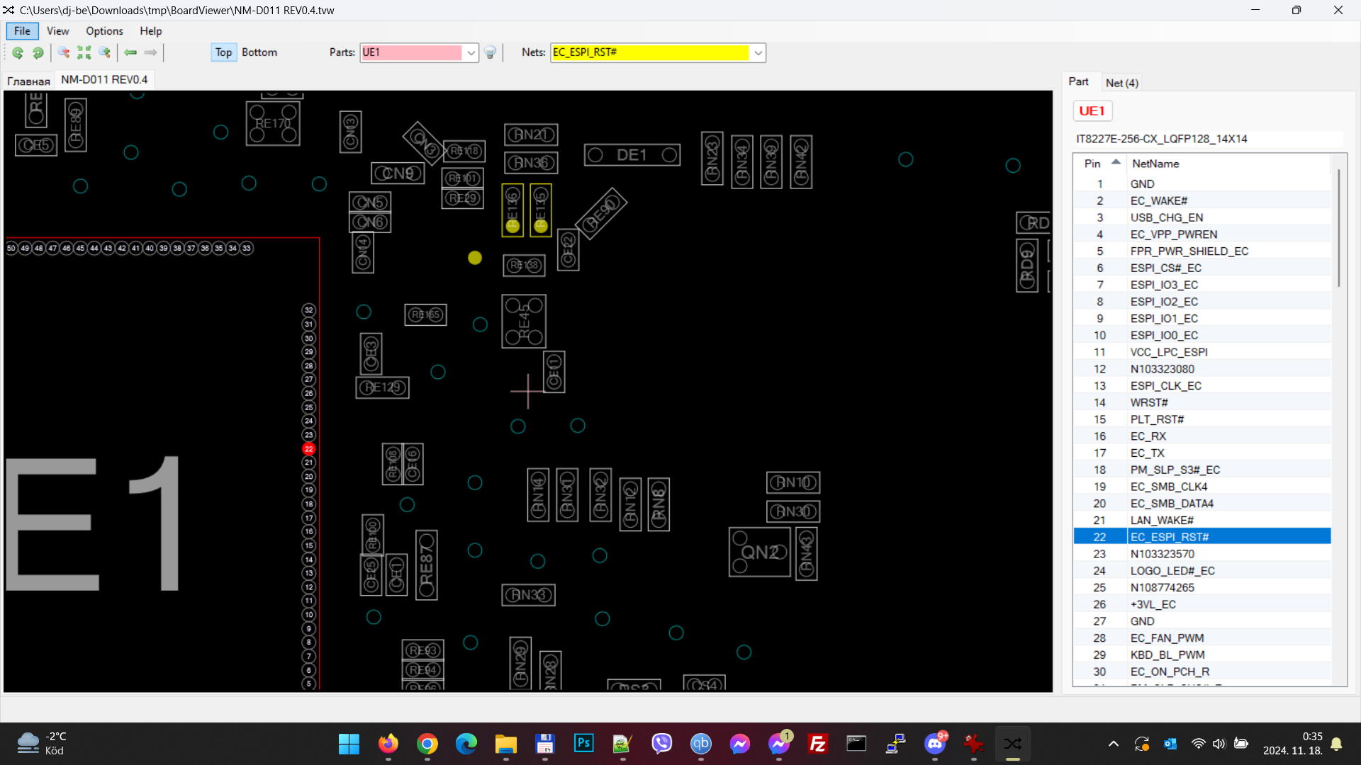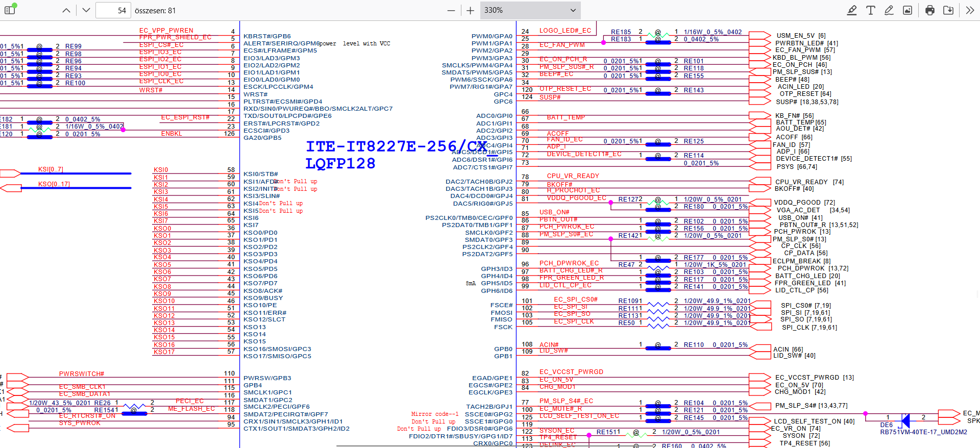It has the IT8227E EC chip. I'm attaching the board view and the schematics. Is the EC_ESPI_RST the correct point to short to ground?