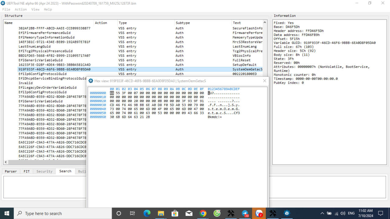 Are you able to tell me what to search for in UEFItool to extract the correct body where that flag is located?