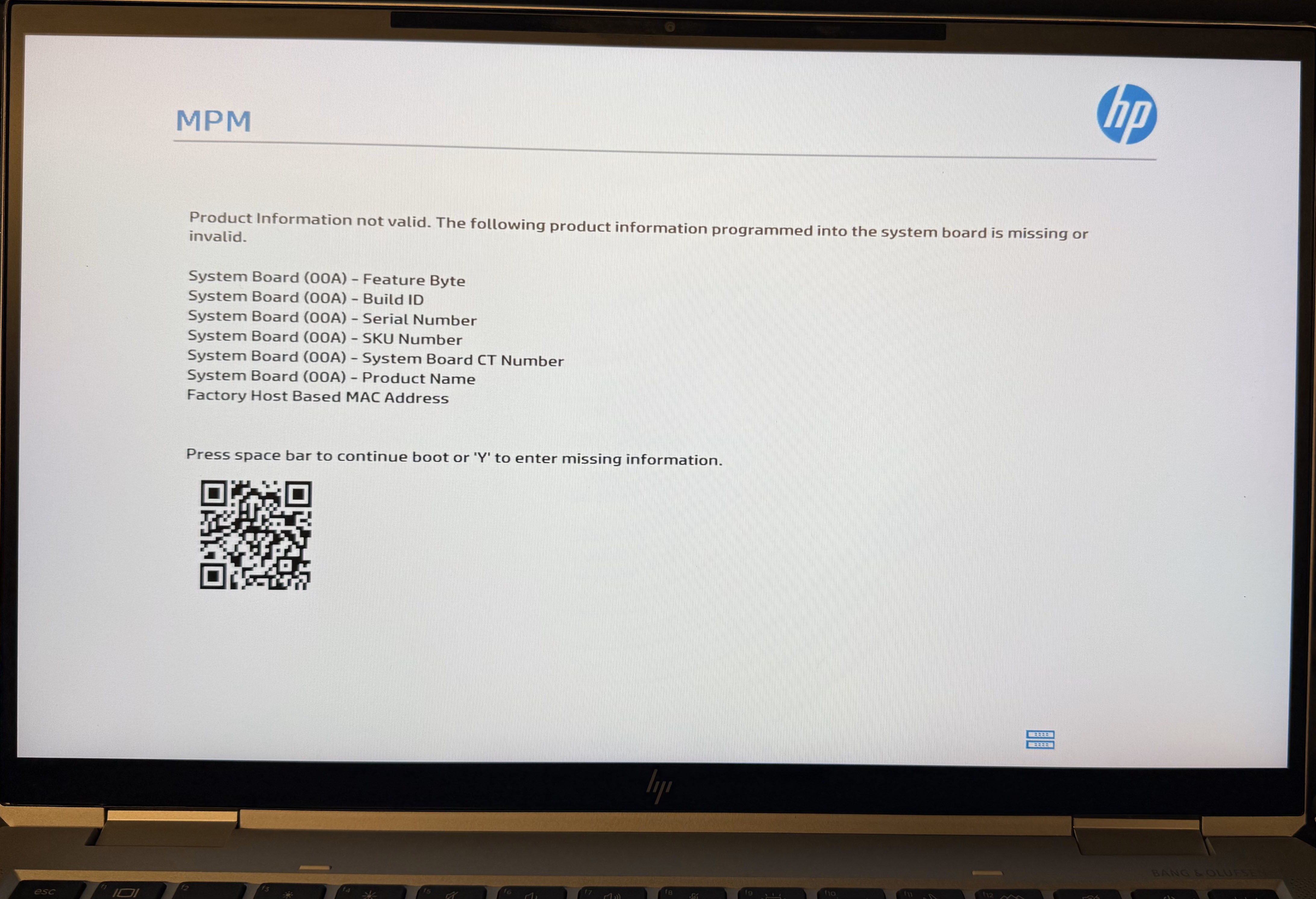 The ME firmware is corrupt or not cleaned (using a clean VSS2 will not fix this !) , you havn`t added the DMI with HP BCU ,the VSS2 store is corrupt,