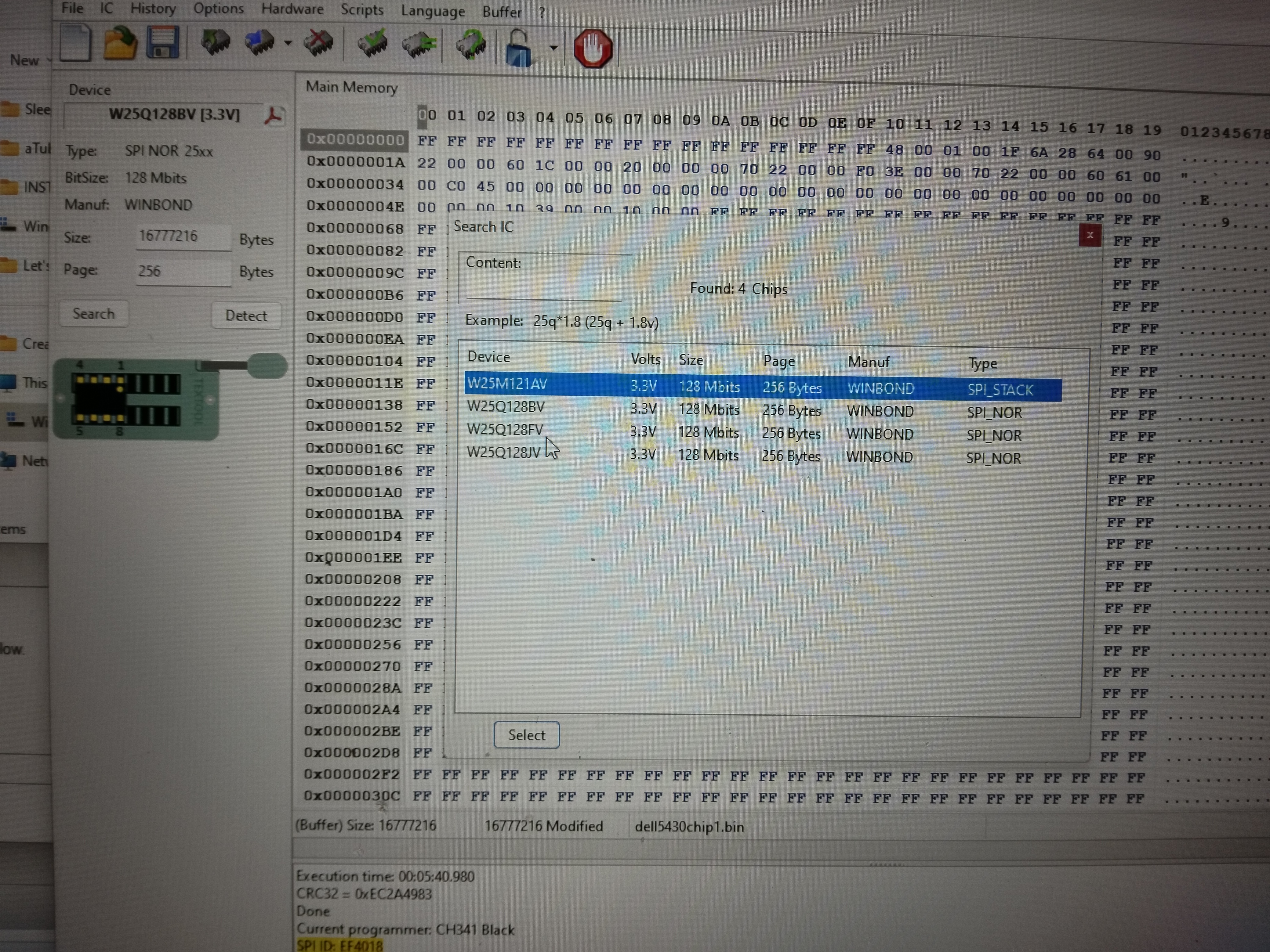 you are wrong somewhere ..t48 can read 256...try again to make your settings correct...Hi Guys I hope some one can correct me and or put me in the right direction. I have a Dell Latitude 5430 admin password locked, i have read both UC2 & UC6 using pogo sticks guessing its something to do with the Dell Safebios, never had an issue with other models so far, with this Latitude 5430, uc6 is marked as a 25Q256JVEN but my programmer Xgecu proT48 will only give data in the dump if read as a 128mb if read as a 256mb it is empty also attached in the zip file, Any suggestions and resetting the me or password would be greatly appreciated.