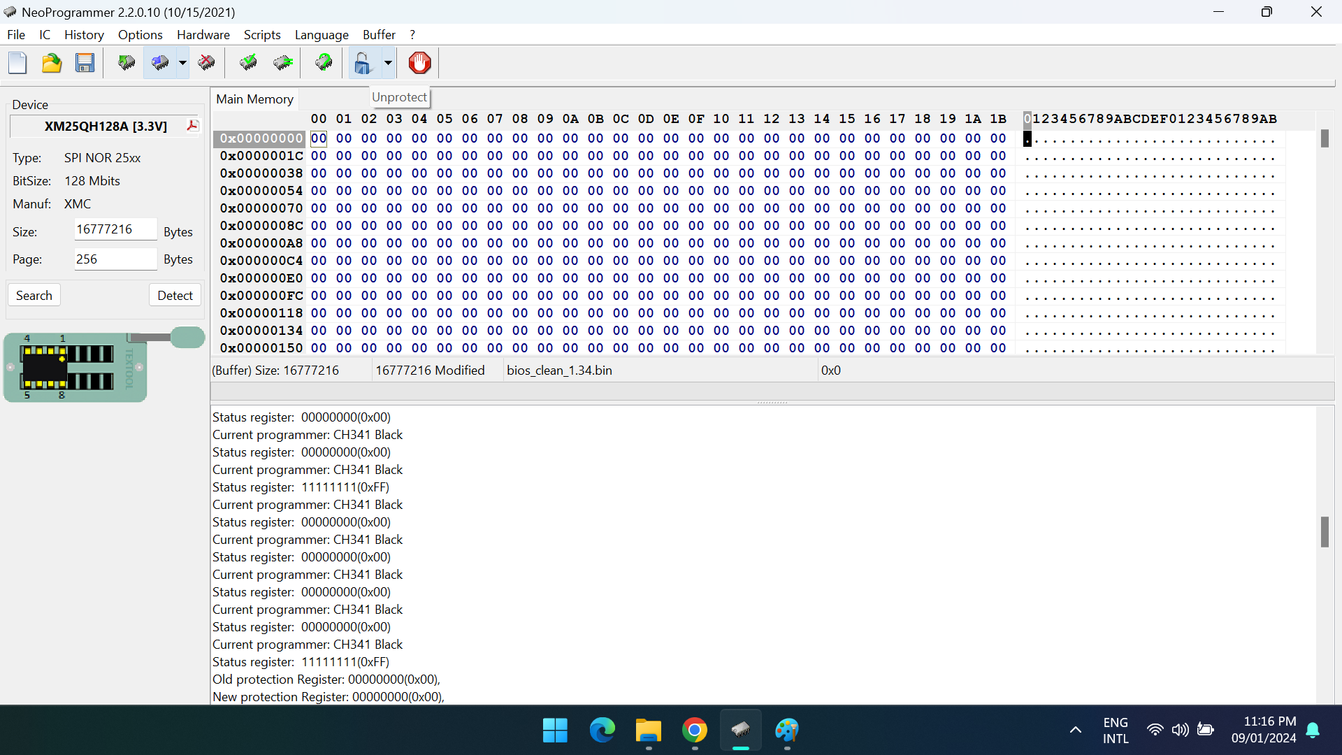 - Erasing IC: it seems to proceed with the erasure, but when I read the IC again, it is not blank