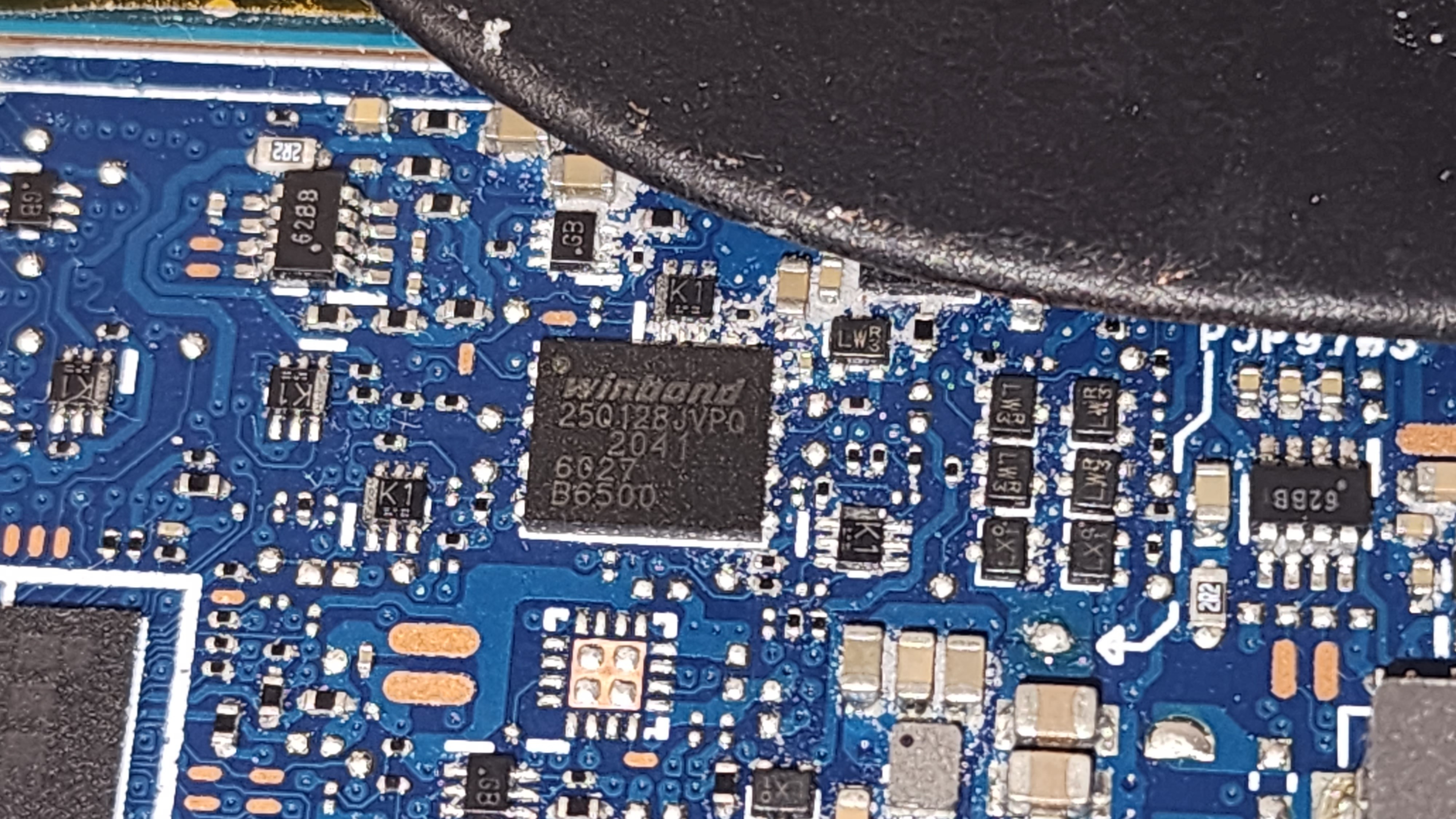 I'm trying to find the contects of the memory in the picture. P/N is winbond W25Q128JVPIQ, packge is WSON8. It is located near the EC chip (IT5125VG-128). Not sure if it's the bios memory. There are some more SPI flash ICs on this board.