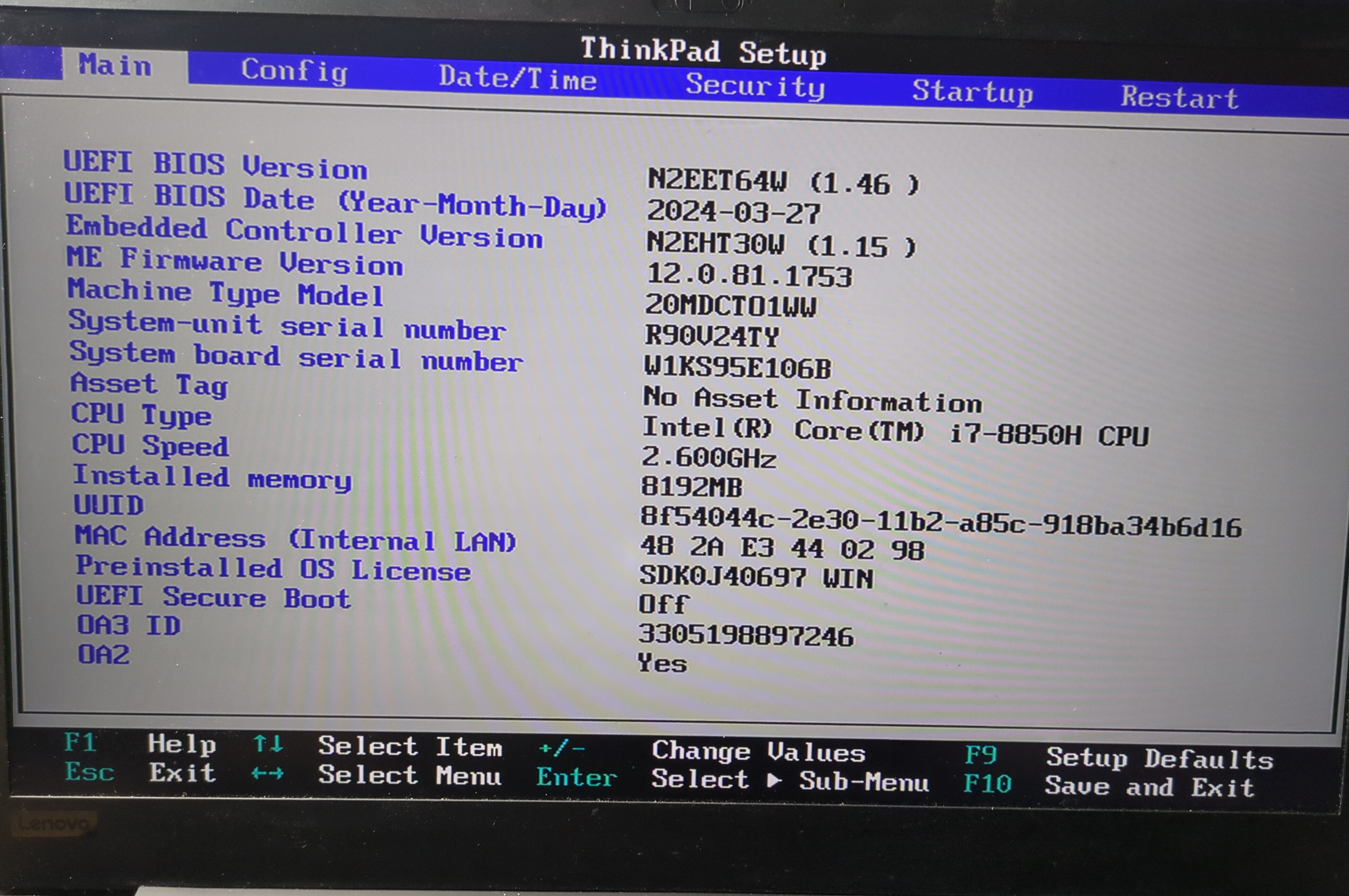 Lenovo Thinkpad X1 carbon 11th Gen BIOS problem
