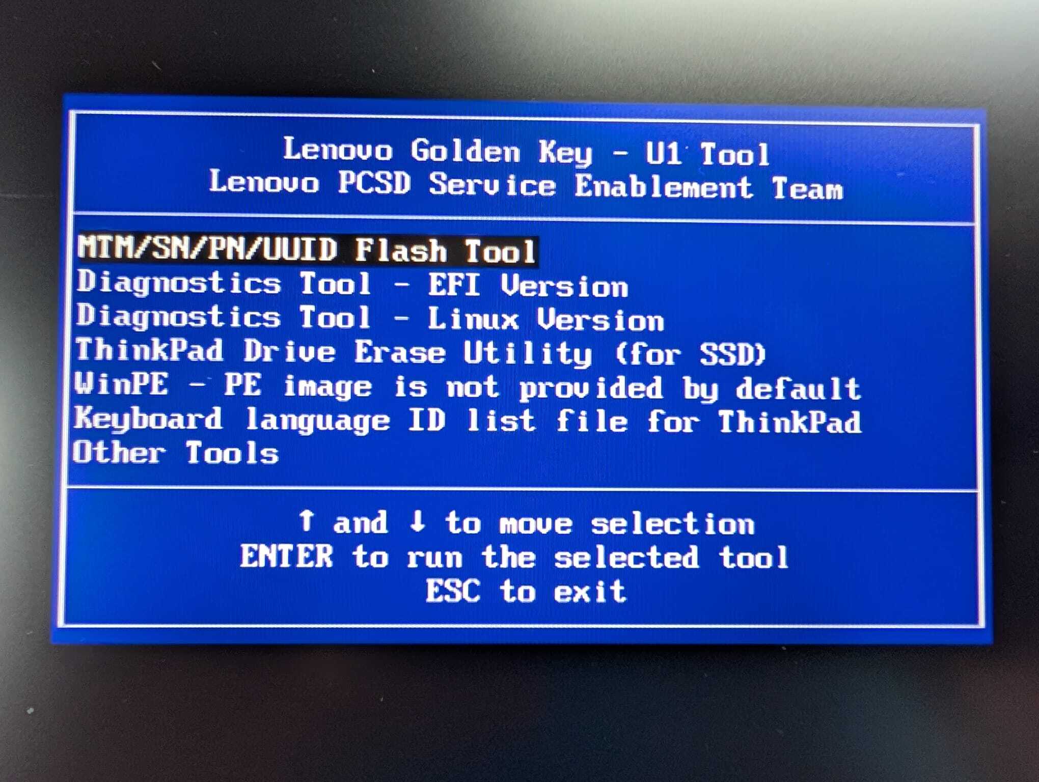 Sharing the latest version of Lenovo Golden Key I found to change DMI information such as serial number, MTM, UUID. Run the U1 application and create a bootable USB. It may show an older version upon making the usb. Restart the program and it will update the USB to the next version available. For some reason the updater programComment