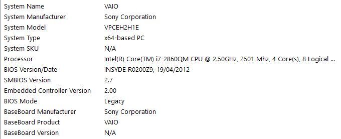 BIOS Insyde Version R0200Z9 date 19/04/2012