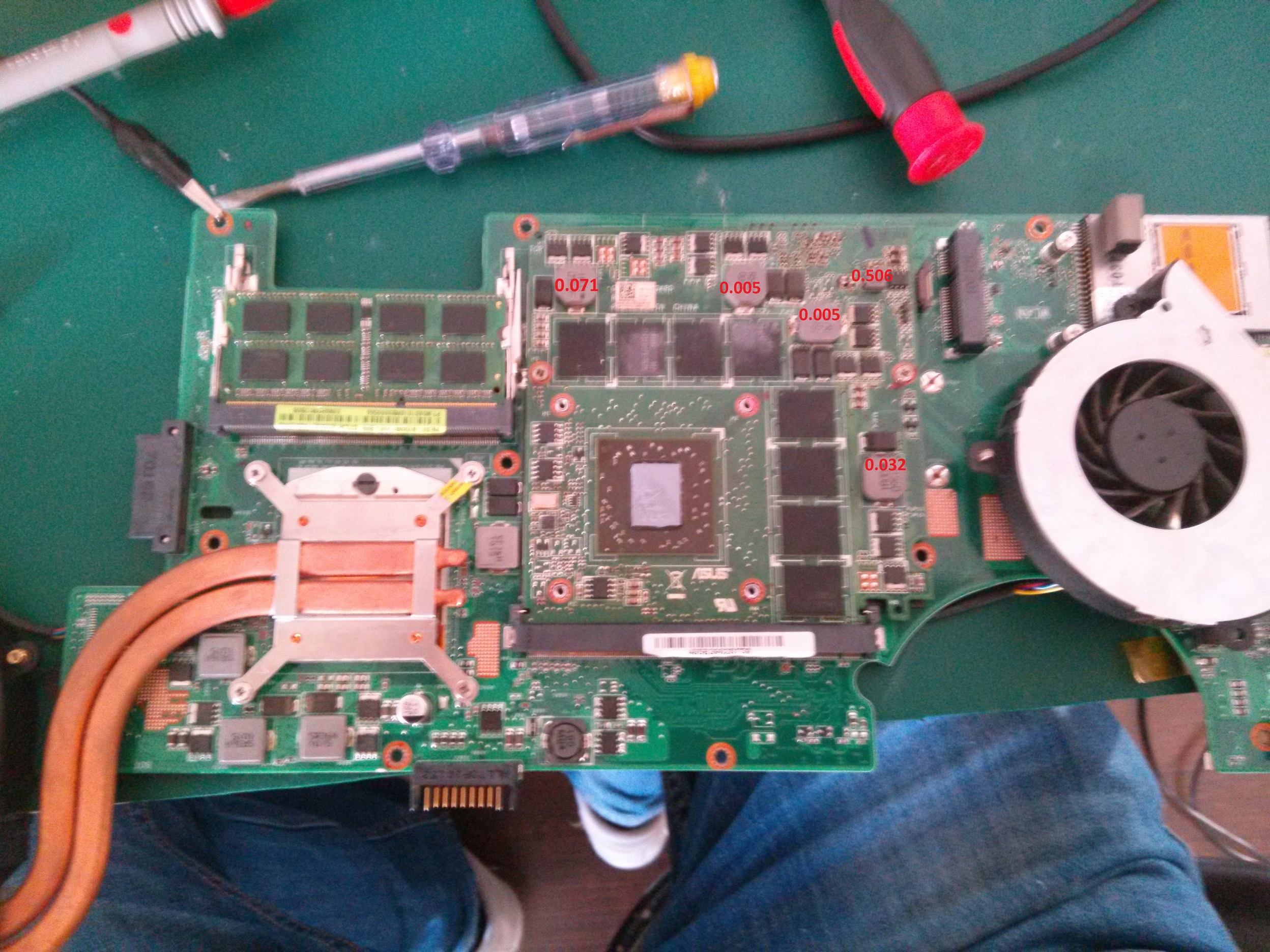 Well I tried a reflow on the GPU, and it when shorted after. Reballed it and short was gone.