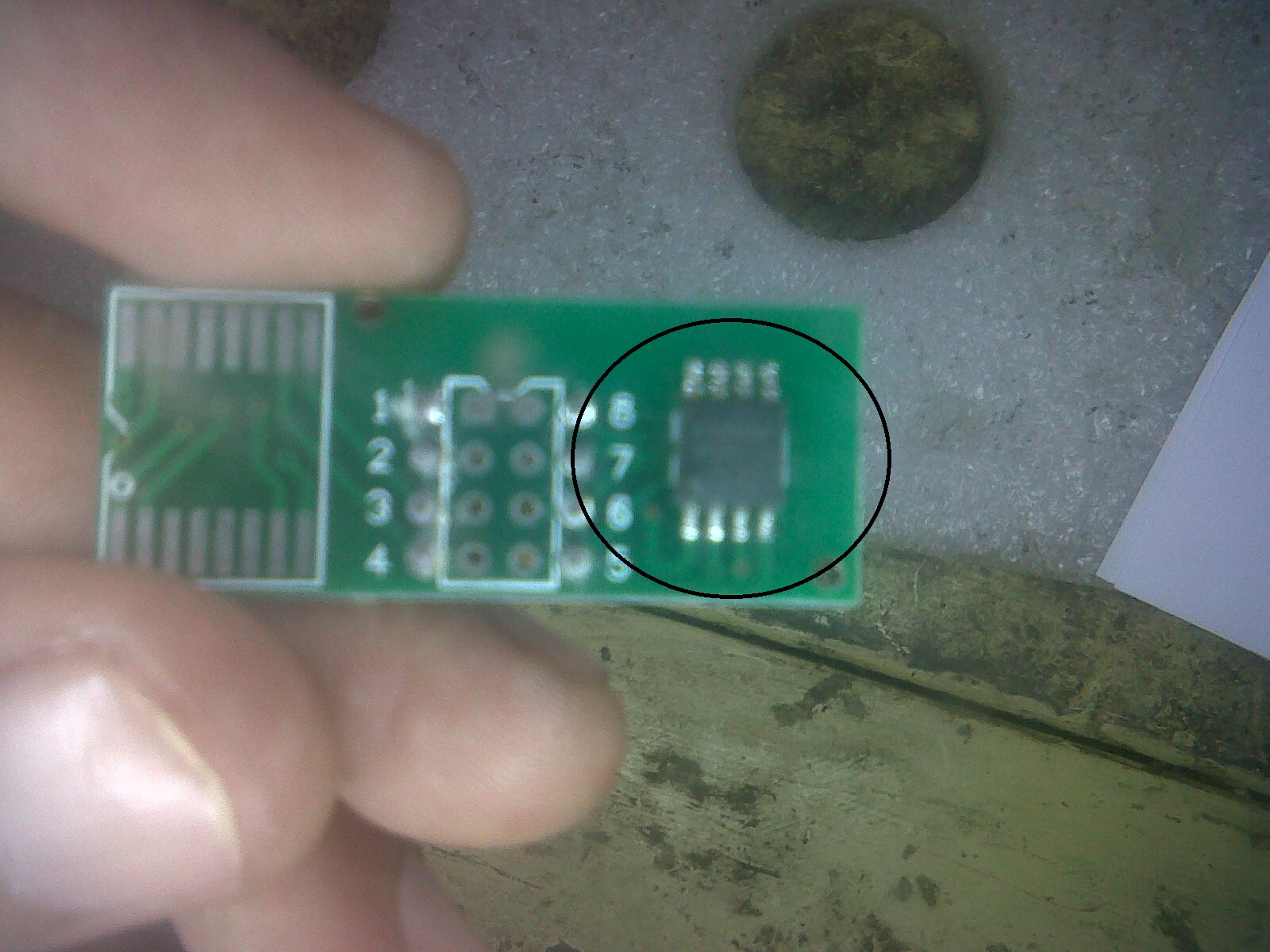 solder the chip to mini board which have 8leg, then put into programmer