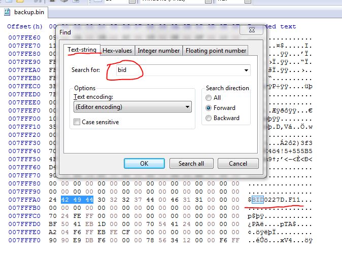 Use a hex editor and search for the text word BID .Some others don`t have the word BID just the numbers/letters so you can search those instead for example 0277A,0227D,02291