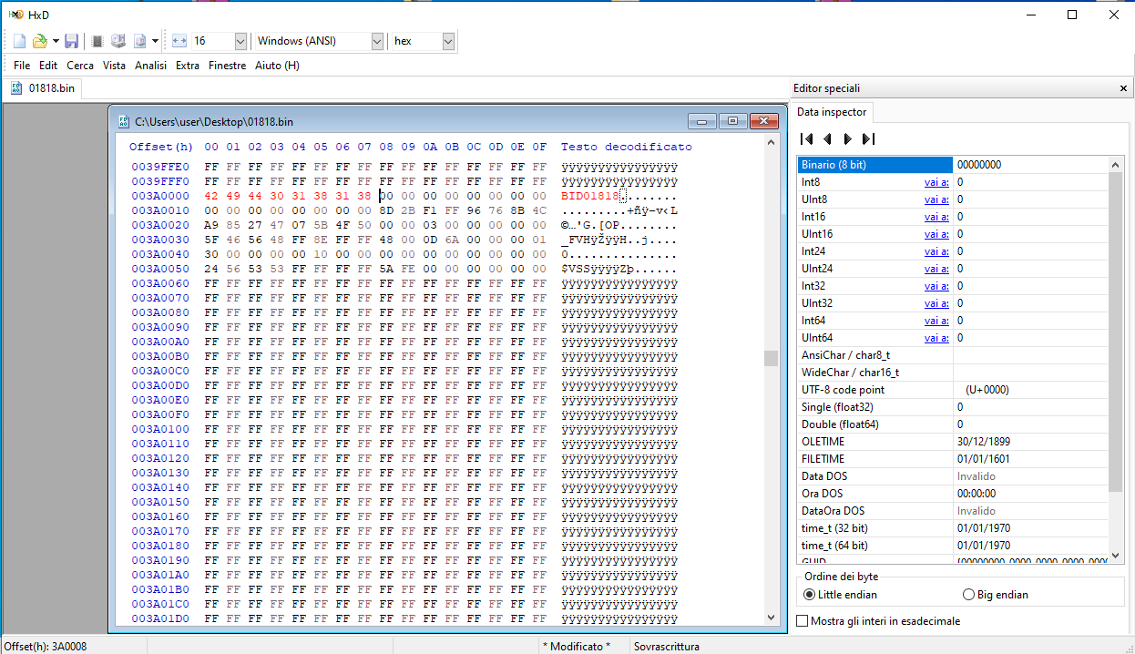 The first picture posted with BID01818 is just showing your bios ID. Use the offsets in the second picture. In HxD close that "Editor Speciali" screen by clicking on the x ,it will only confuse you ,and closing it will give more screen space