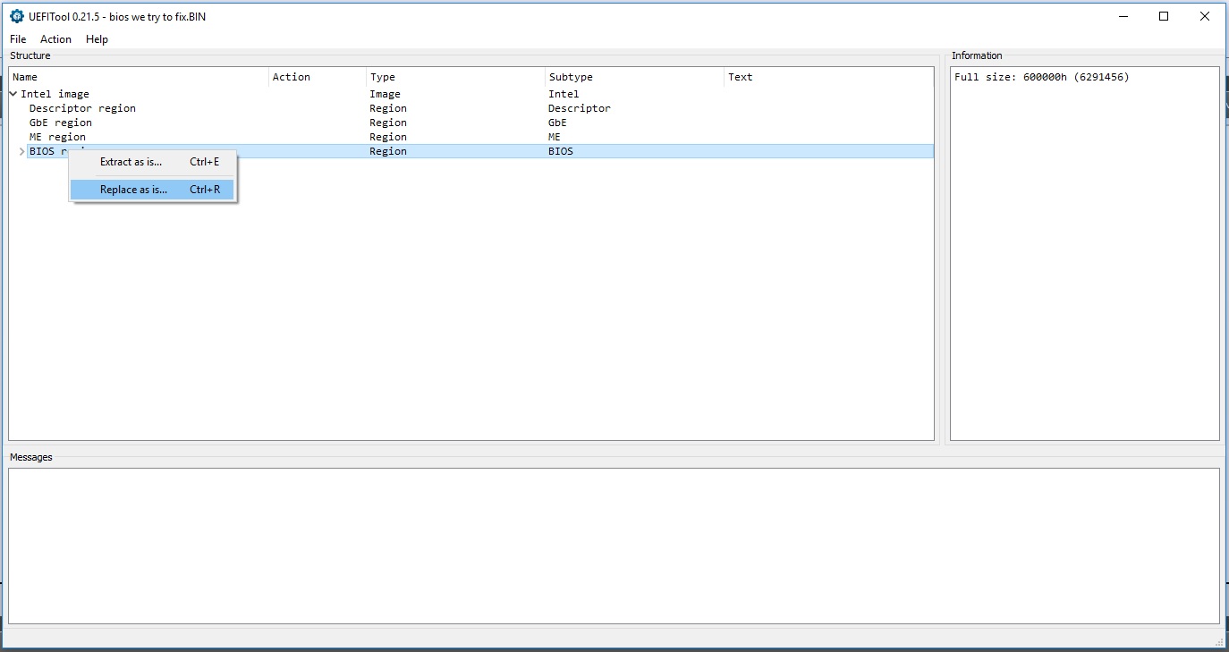 note that in order for this to work main part called BIOS_region.rgn and extracted from web update called UEFI_image.rom needs to be SAME SIZE!!!! or it will not work