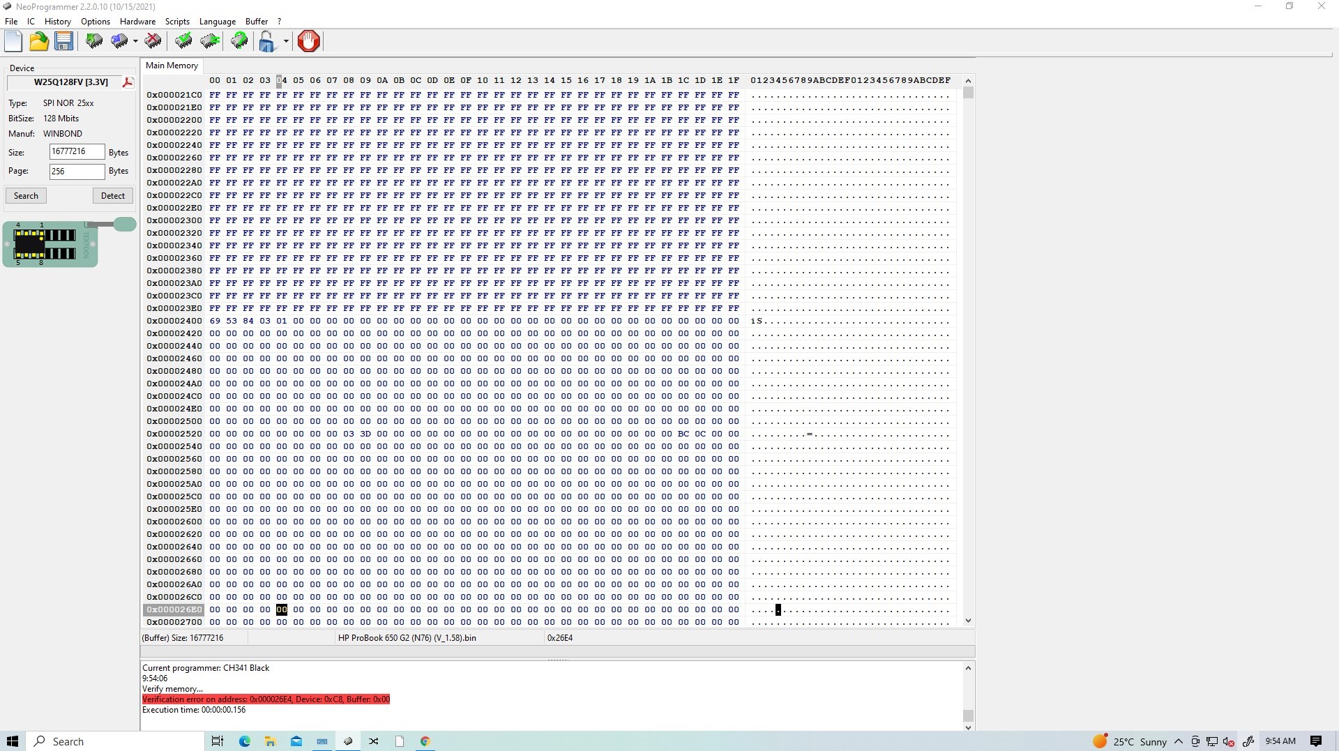 Hp Probook 450 G7 s# SCD0348W35 had a locked BIOS. Bought BIOS and EC chips off Ebay that were supposed to match this machine - the 450 G7. Flashed in the BIOS on chip i bought using a CH341. BIOS unlocked next boot. Some error to contact HP. Entered BIOS and reset to system defaults and rebooted. Machine worked fine but every cold boot the contact HP message popped and everything else worked as fine. Assumed the error was from EC chip not matching BIOS that i just flashed in. So i flashed in the EC that was supposed to match from the EBay chip i bought and instant brick.