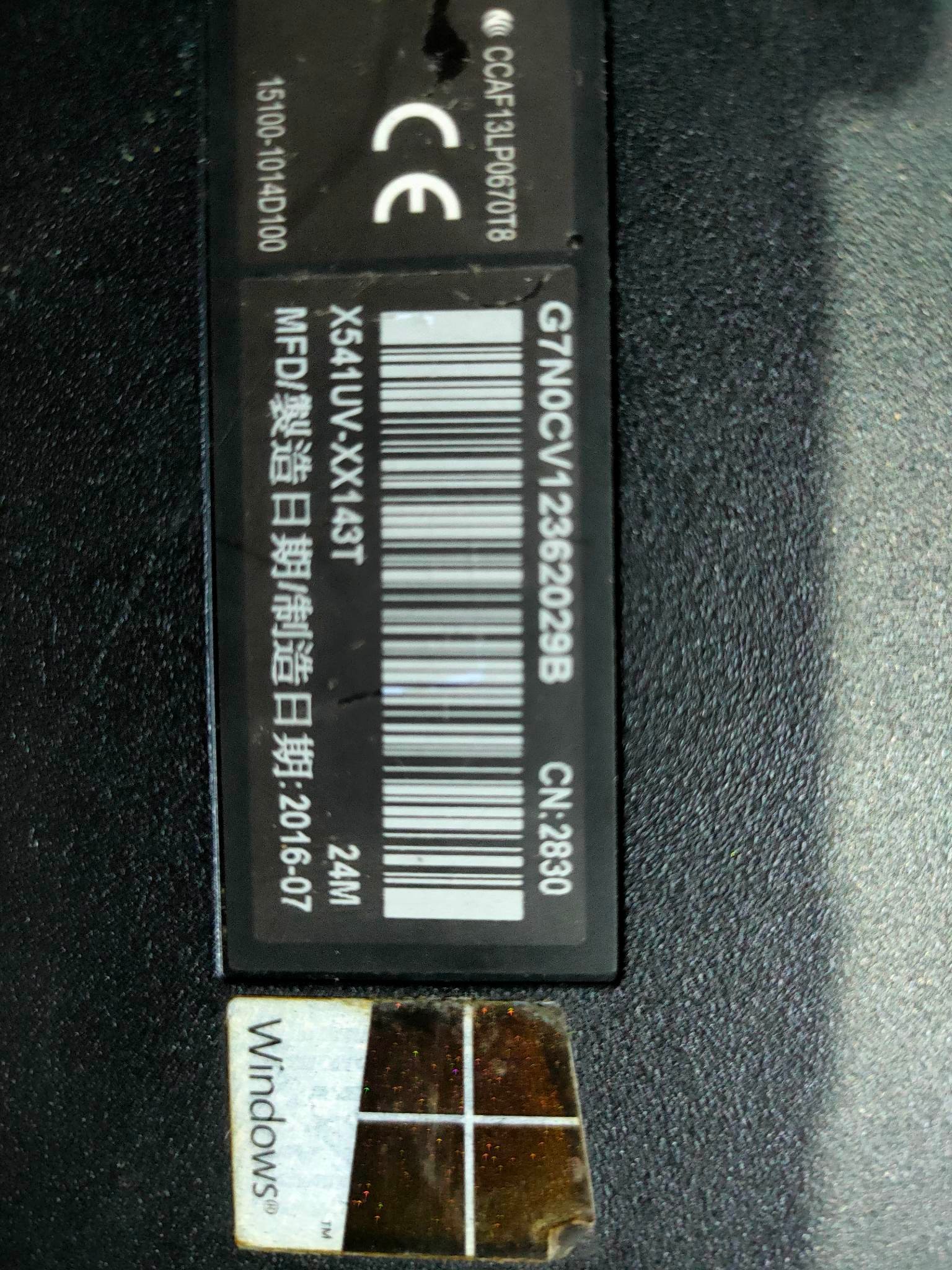Hello sir @Hardware1, these were the reference number X541UV-XX143T...... G7N0CV12362029B.. Thanks much