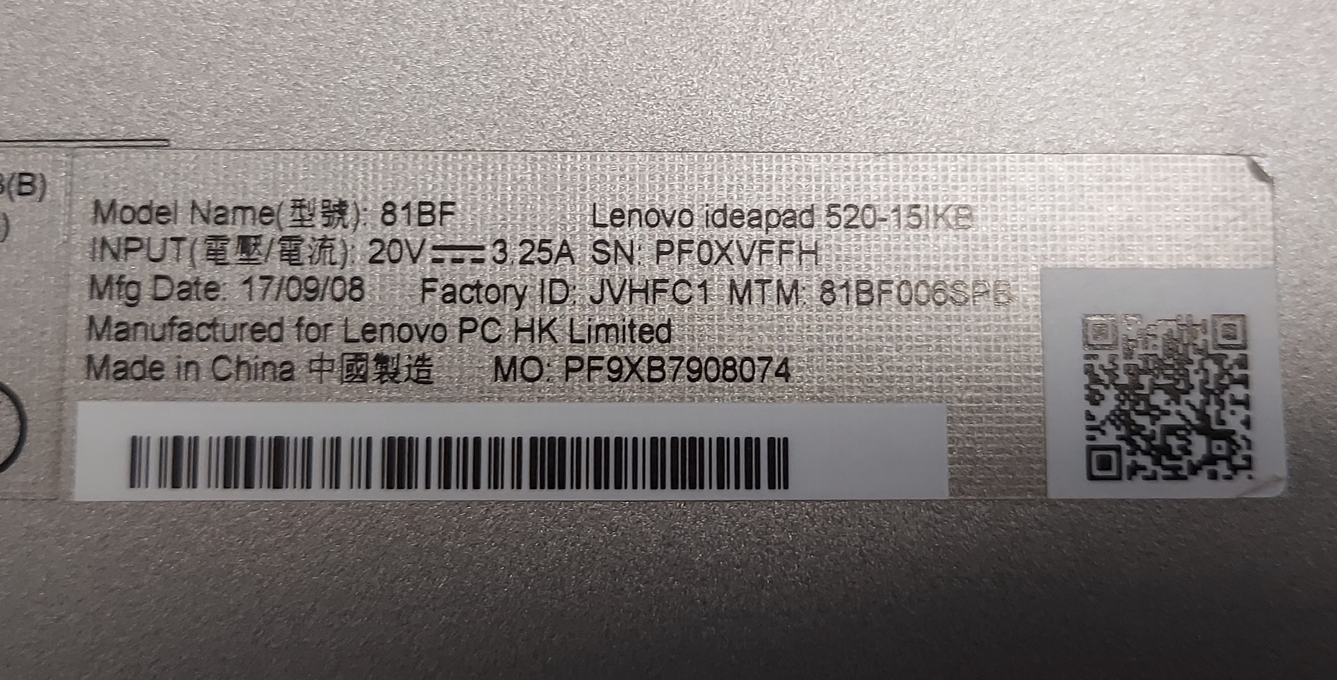 520-15IKB (Type 81BF) Laptop (ideapad) - Type 81BF