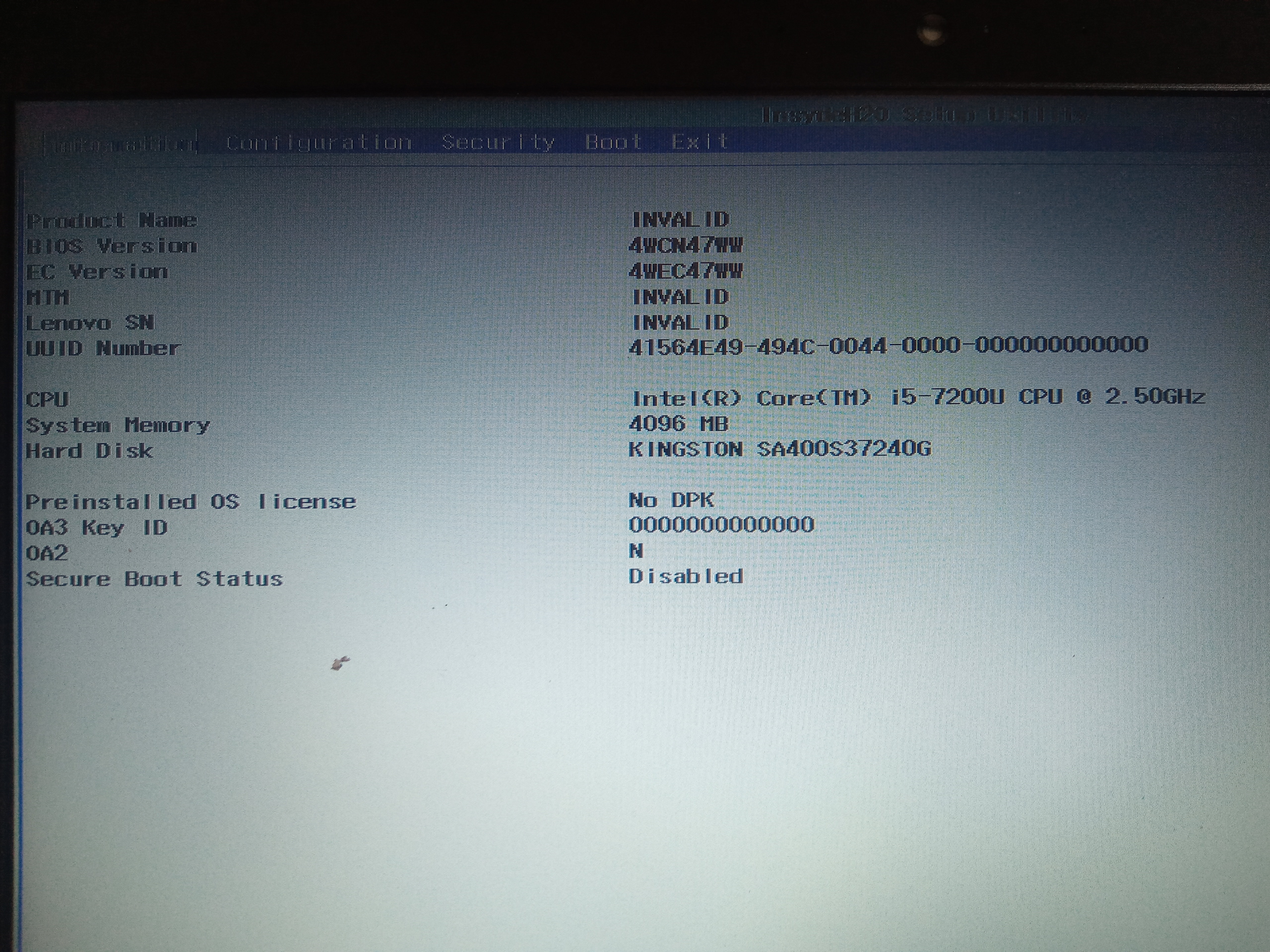 As the previous Bios sent by ALI5914 was apparently all right, I ignored his posted file, although I thanked him. But now looking for performance improvements, due to slow startup and access to Windows, I used yours, it started faster, but it lacks Hardware and software data (Product name/MTM/ S.N/ OS.License), can you help me?