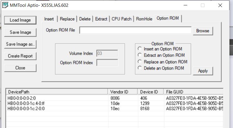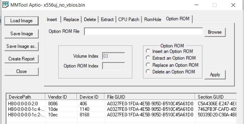 The option rom is replaced but with strange result, other option rom in the list have the Vendor ID and Device id as not detected.