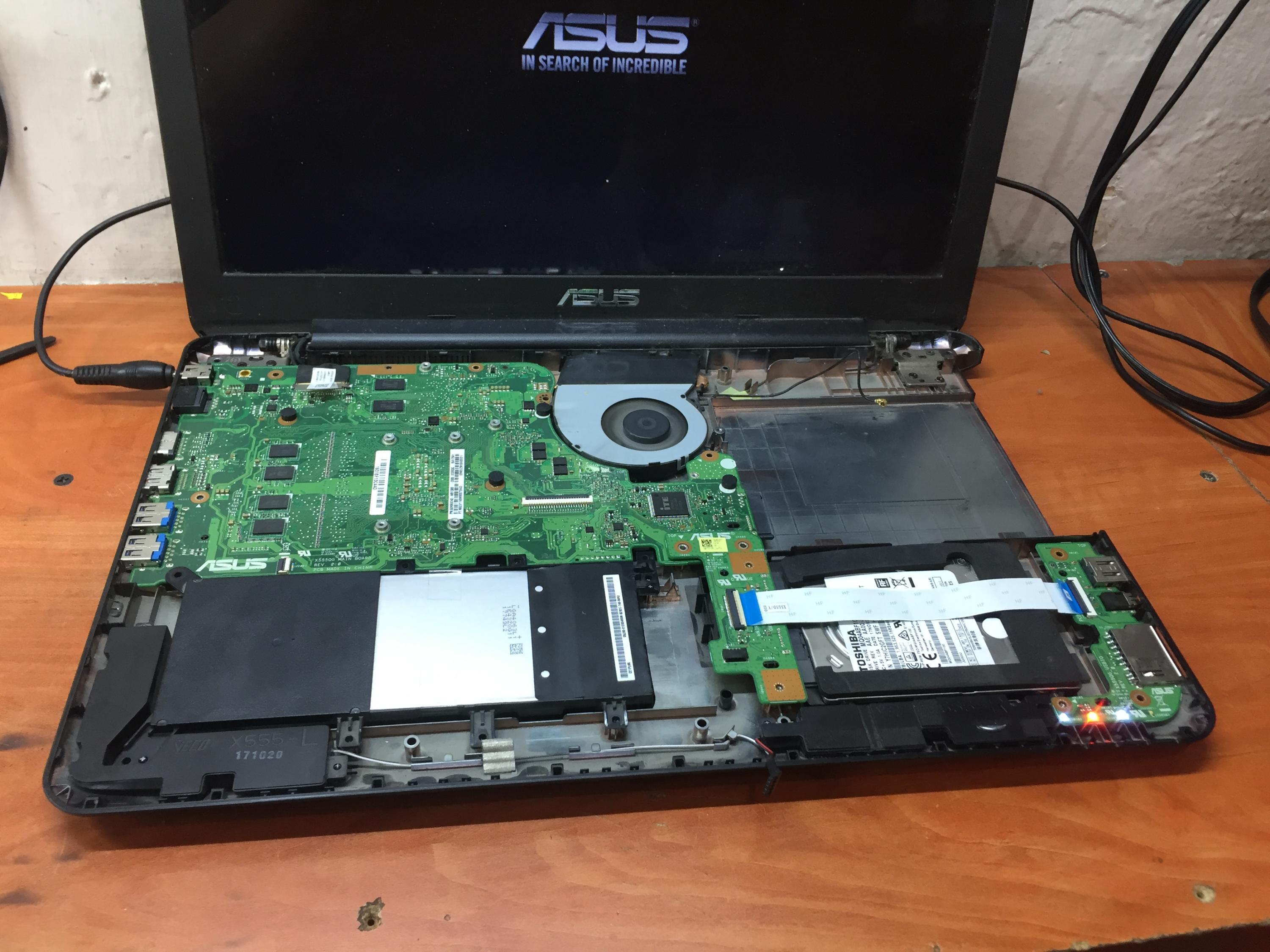 I share Asus MB X555QG dump, I do not know if it works, I have a computer if it works. Just turn on a led (photo annex) Please if someone has a copy of the same card share it or sell it to me.
