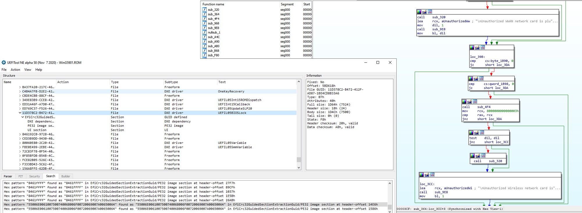 by xsd611​Hello, this is a BIOS file for the Lenovo X270 laptop, read out through a CH341 programmer. I located error 1802 in the PE32 module. This is a detection for the network card's whitelist. How can I bypass or remove the whitelist check? My skills are limited, and I have tried many times but ended up with a black screen. How can I normally bypass this whitelist check? Please help me edit this BIOS file, thank you. It would be great if you could provide illustrations to guide me. Thank you very much!...