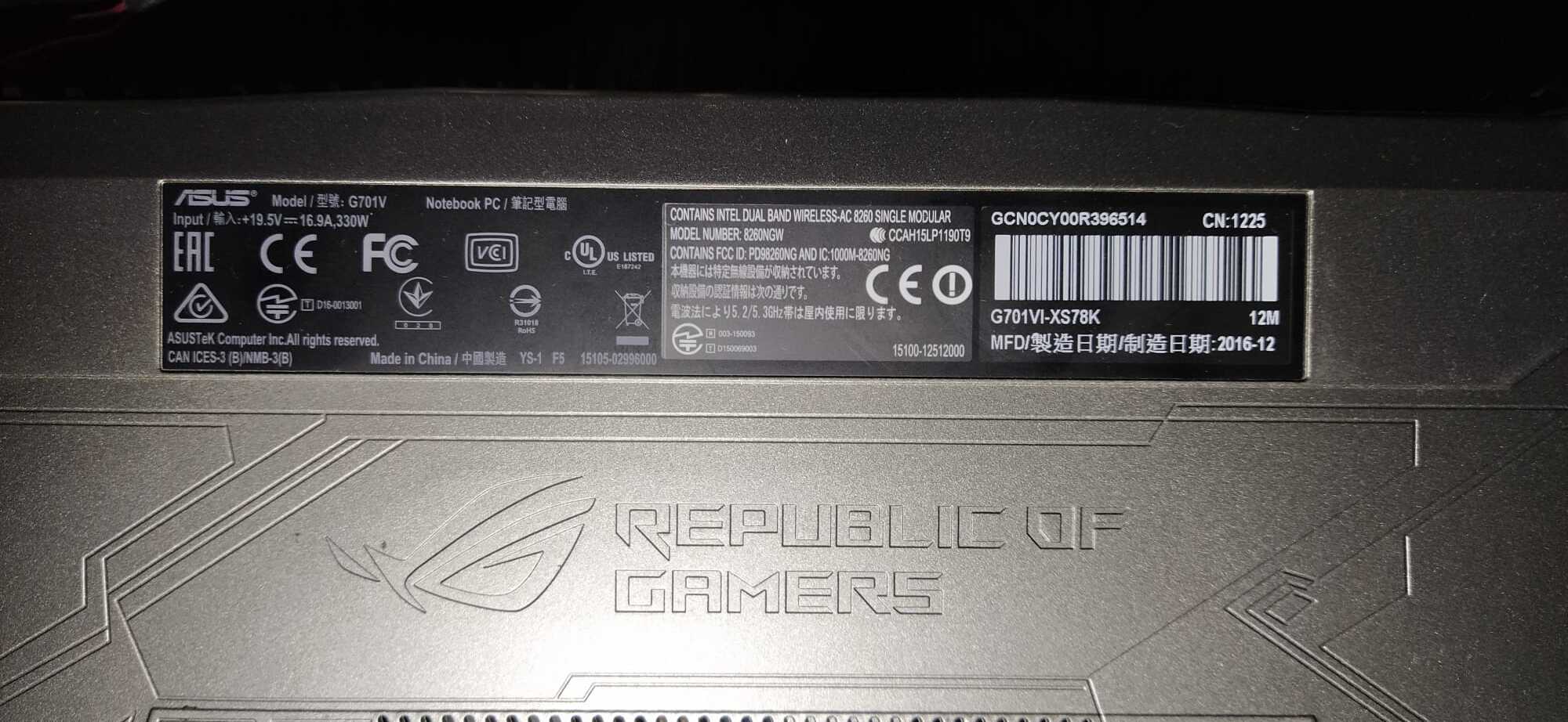 ASUS ROG G701VI-XB72K-HID5 Notebook Specification for Upgrade or Repair