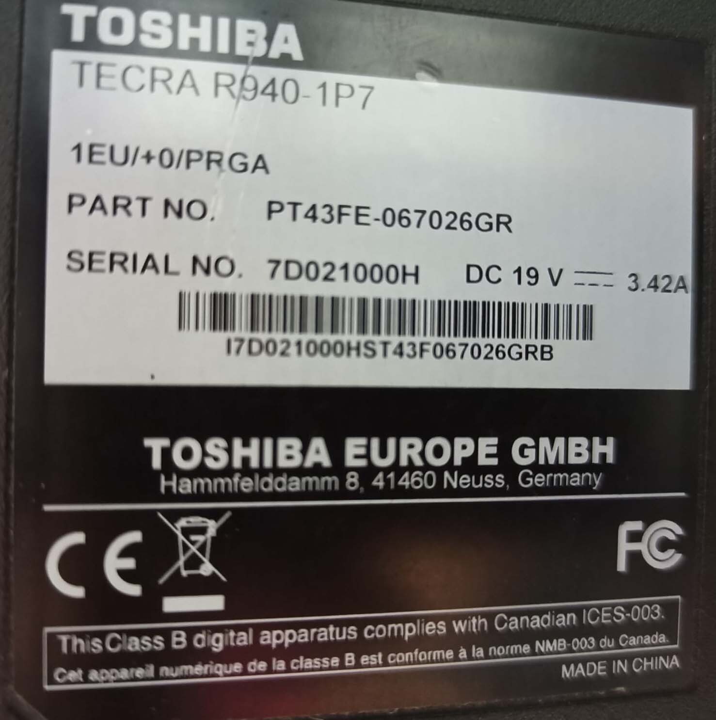 Can you give me a response code for : THOSHIBA Tecra 940-1p7