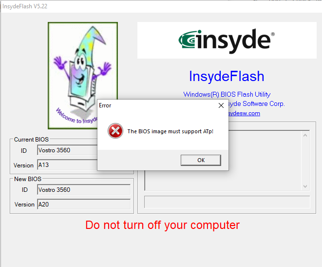 i try to upgrade my Vostro360 from A13 and using 4Mb.bin from here i see there's a chance to do that. What i see unfortunately is "The BIOS image must support the ATp!".