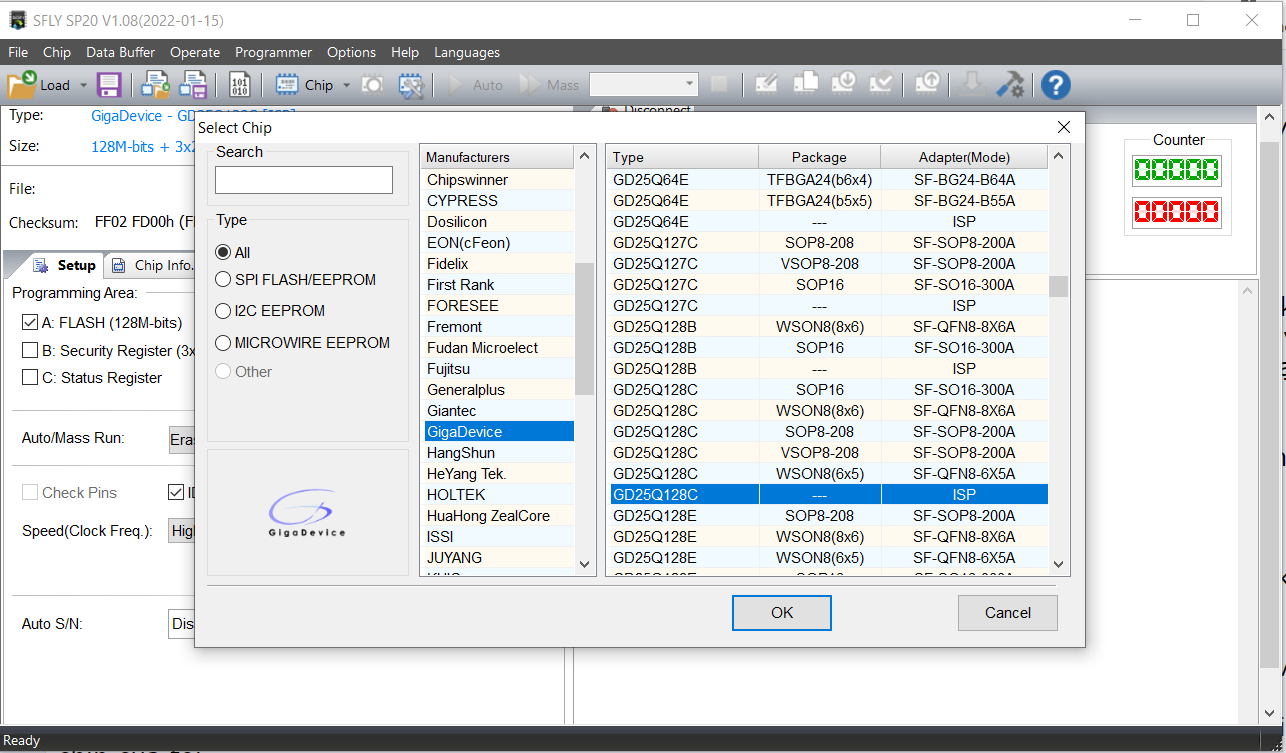 I would appreciate if you could explain to me and recommend me a programmer model that supports my chip.